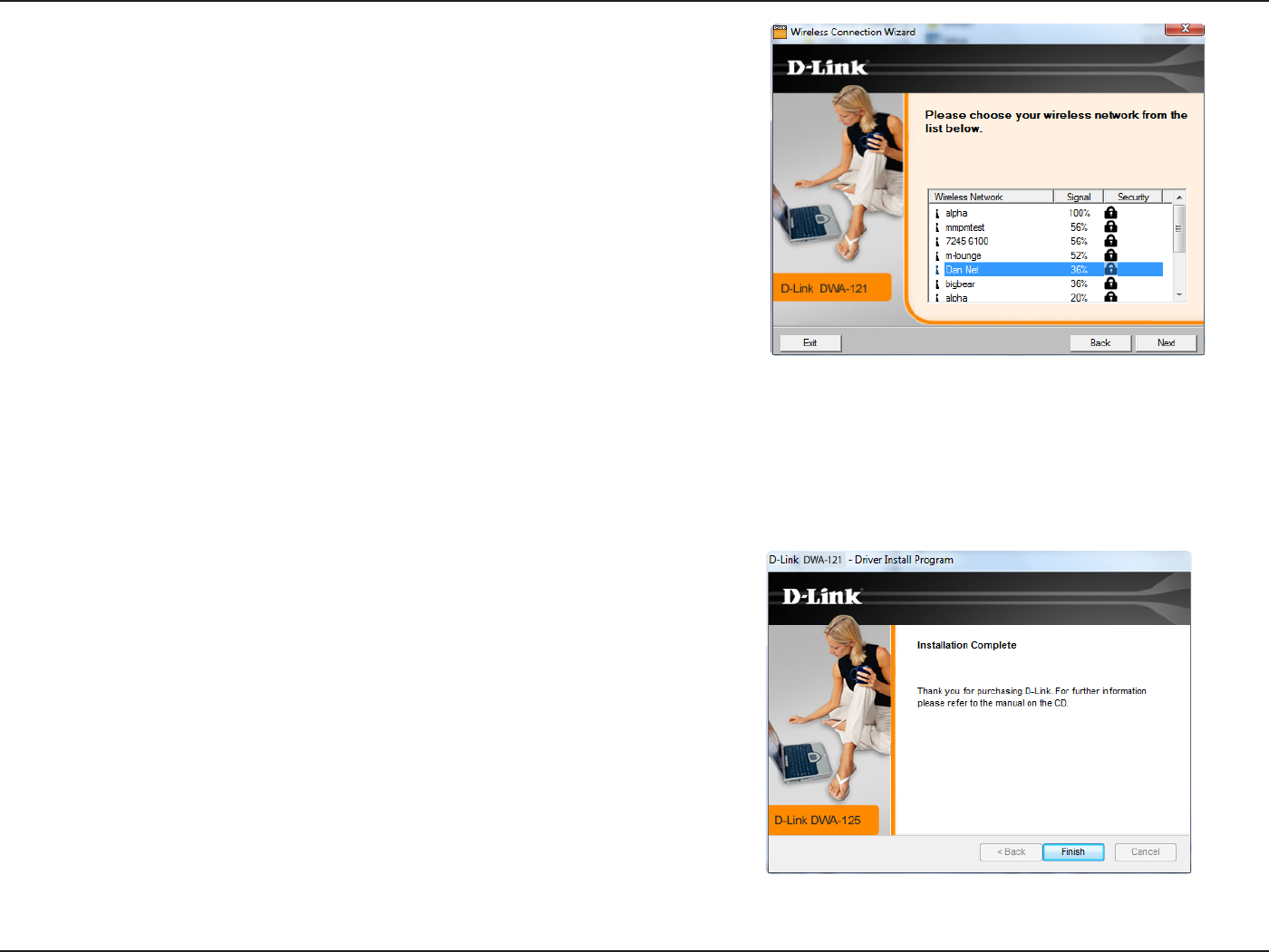 D-Link’s Quick Setup Wizard guides you step-by-step through the installation process. You’ll be able to congure this USB Adapter without having
