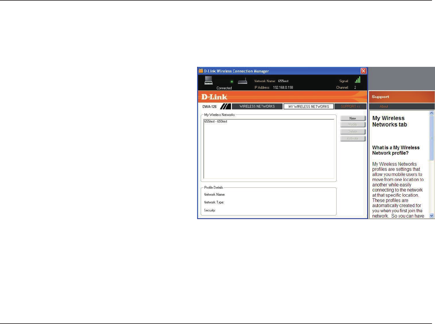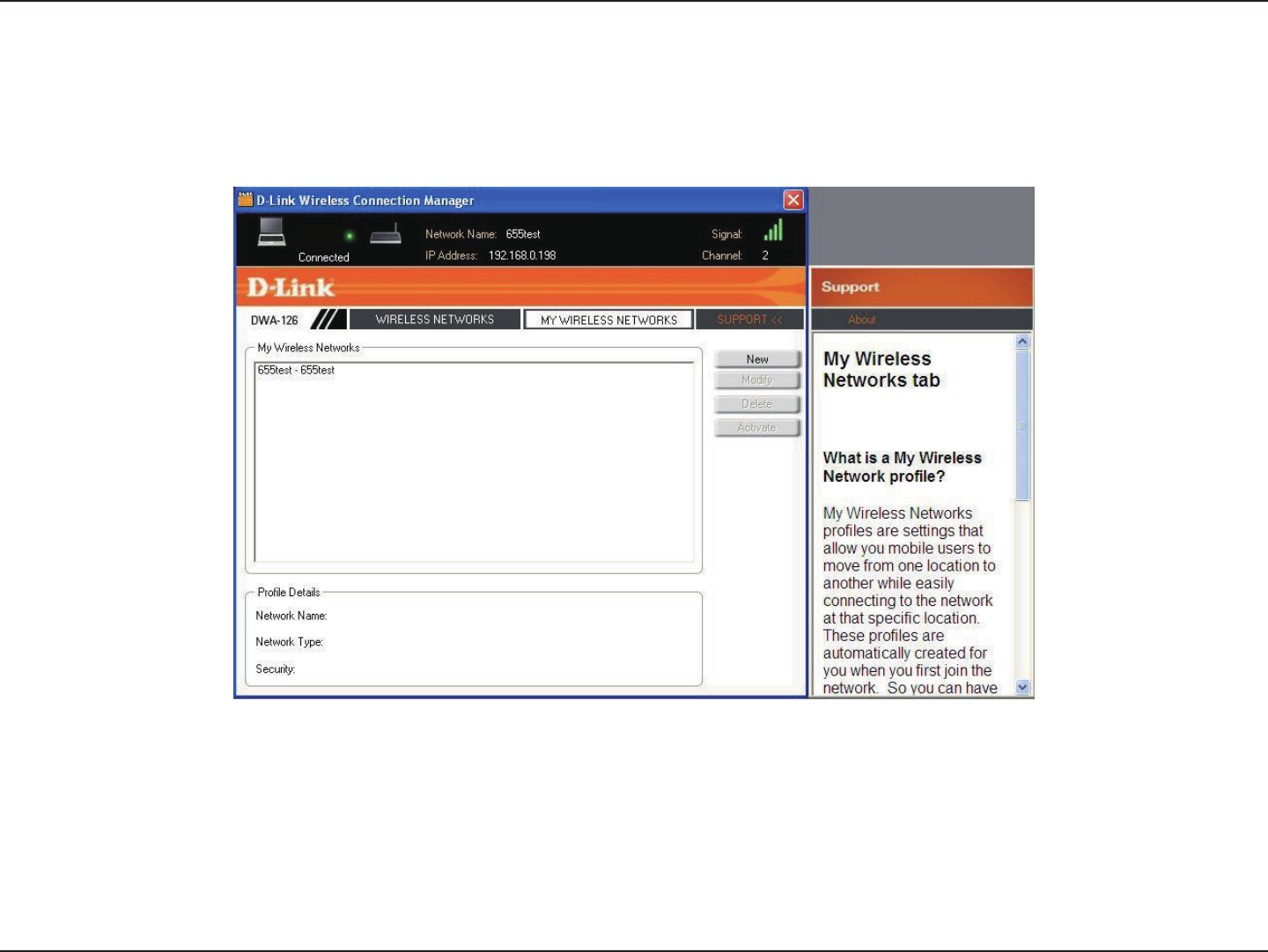 The My Wireless Networks page will allow you to create, edit, and delete wireless network proles. Every time you