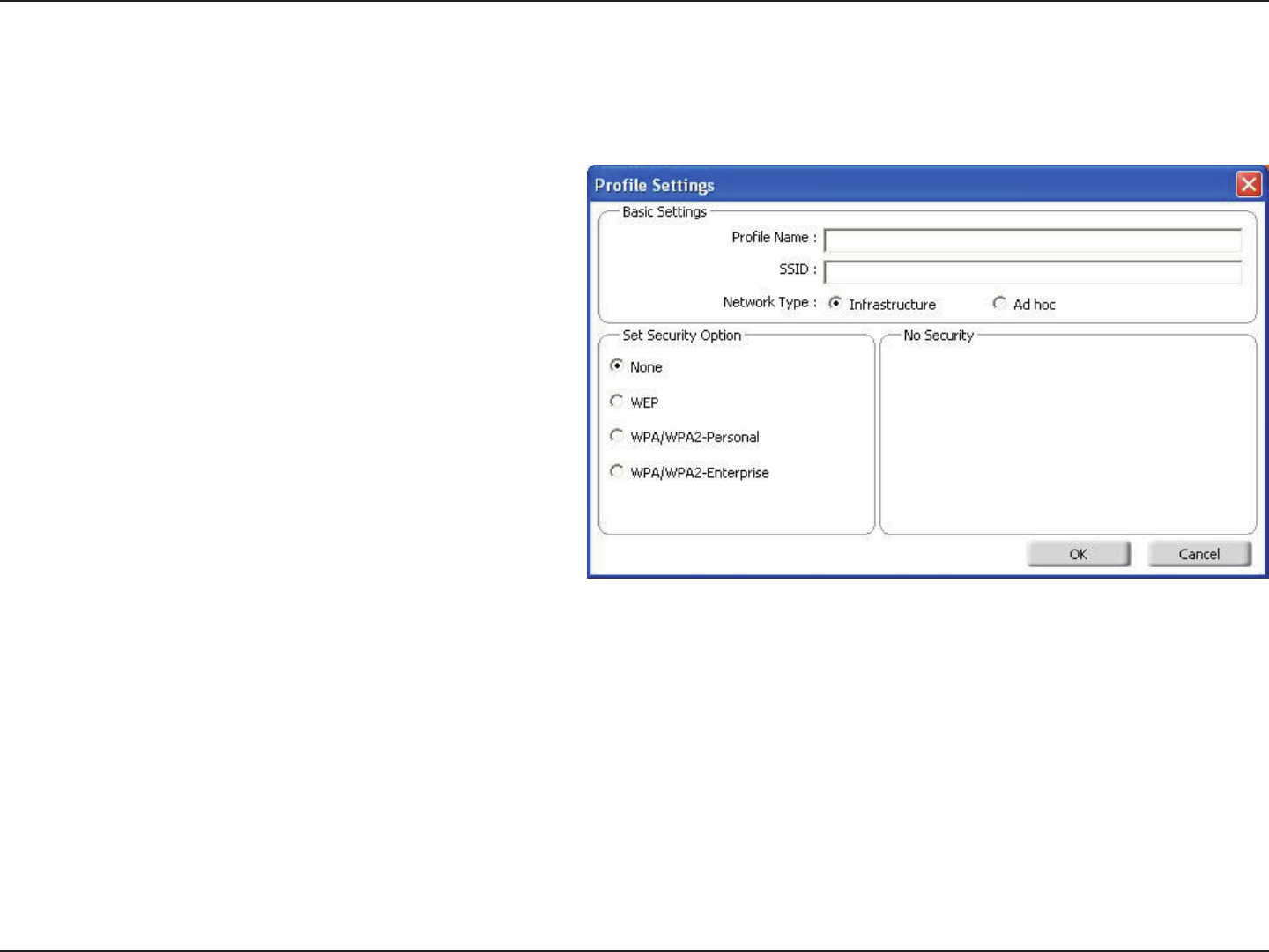 settings for the wireless adapter.