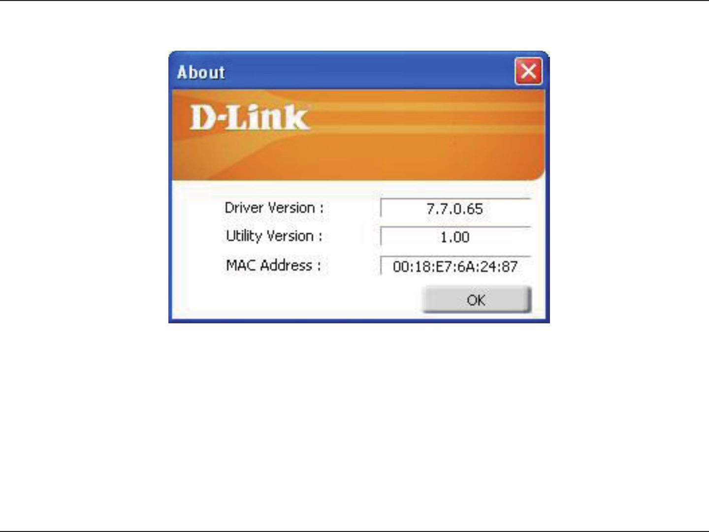 The About screen gives you information about the Firmware and Utility Versions of the DWA-126.