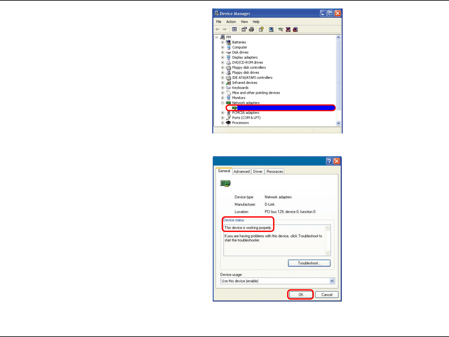 Make sure that the DWA-130 Wireless USB Adapter is properly seated in the computer’s USB port.