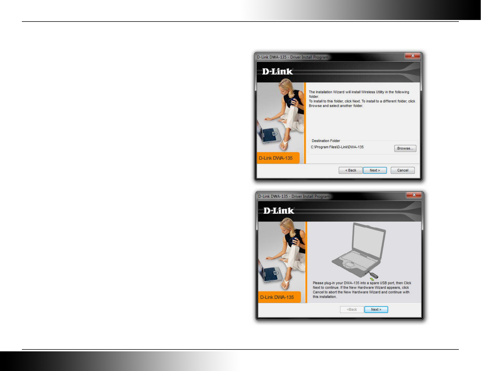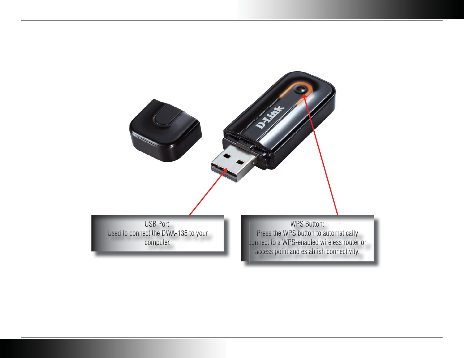 or dismantling your desktop computer case, the DWA-135 can enable 802.11n wireless connectivity by simply utilizing your desktop or notebook PC’s USB port.