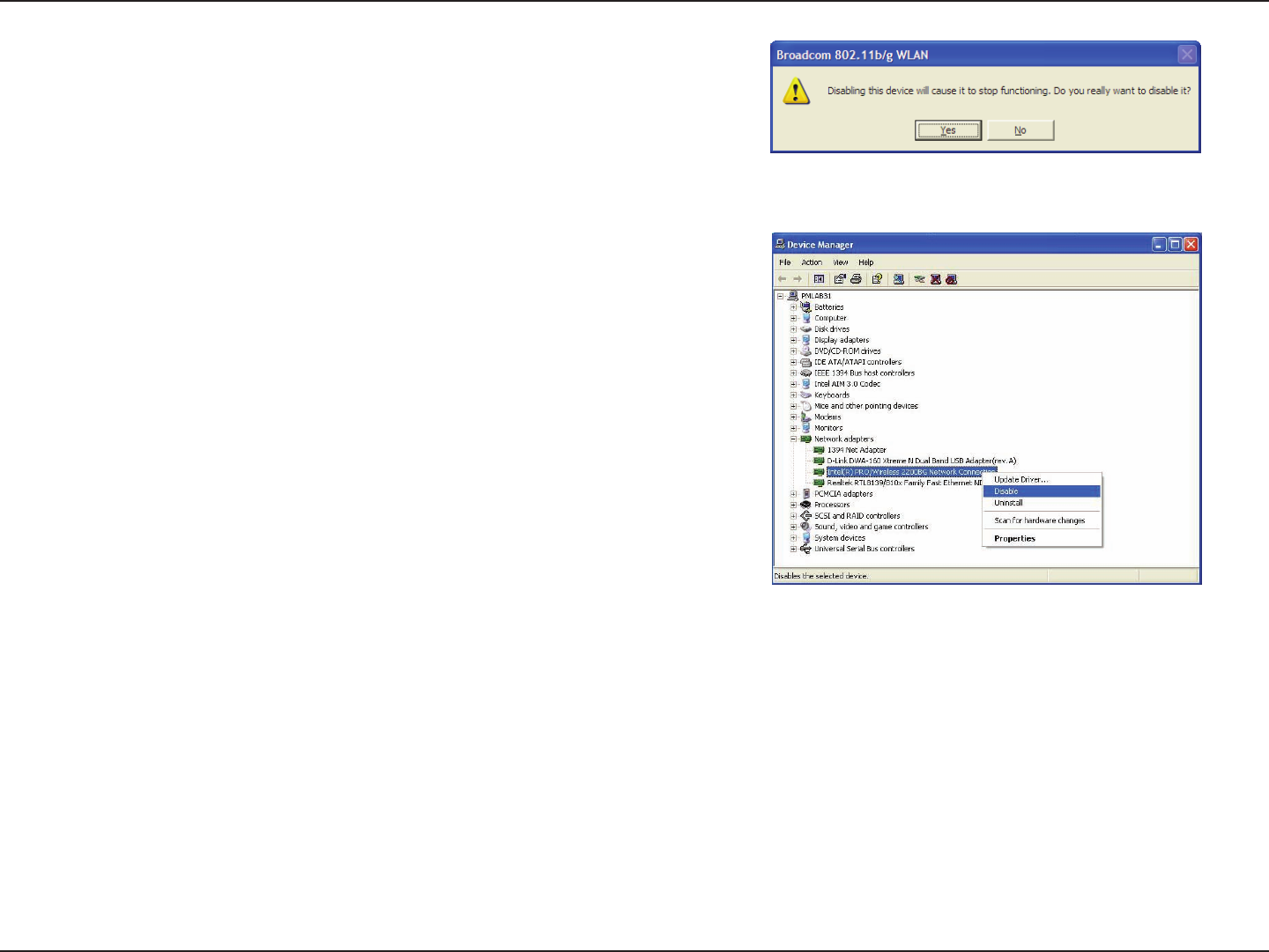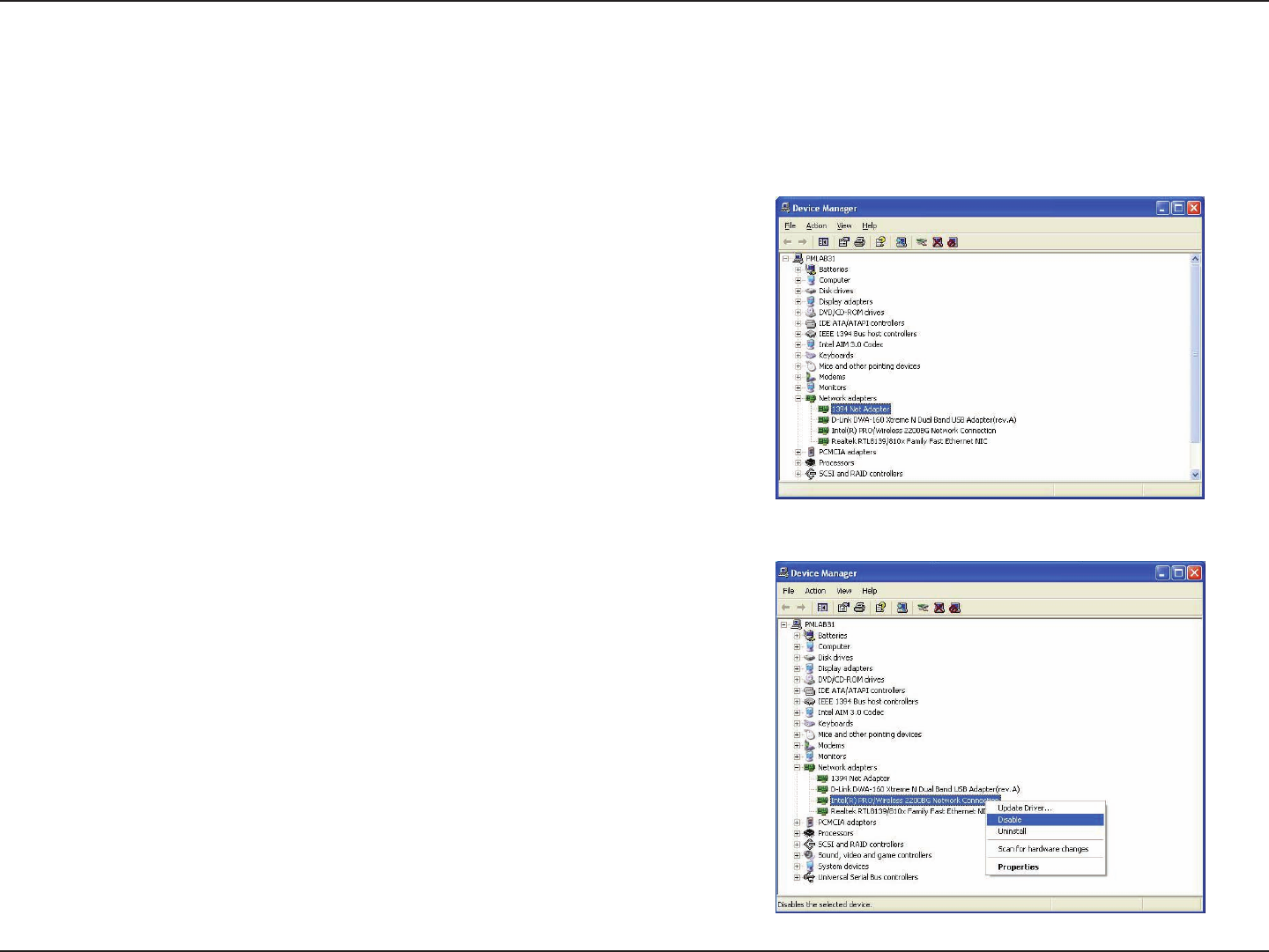 Most newer laptops may include a built-in wireless adapter. To prevent any conicts with the D-Link wireless adapter, it is recommended to disable