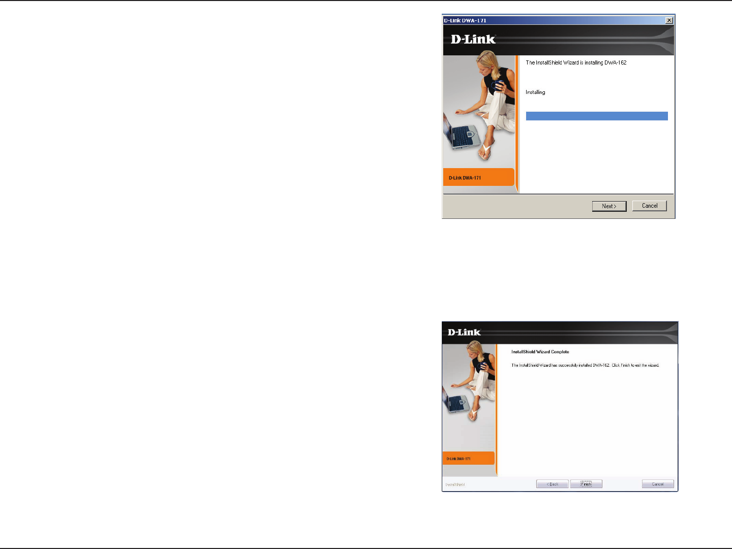 If you’ve installed a dierent manufacture’s adapter or a dierent model D-Link adapter, make sure the software is uninstalled before installing
