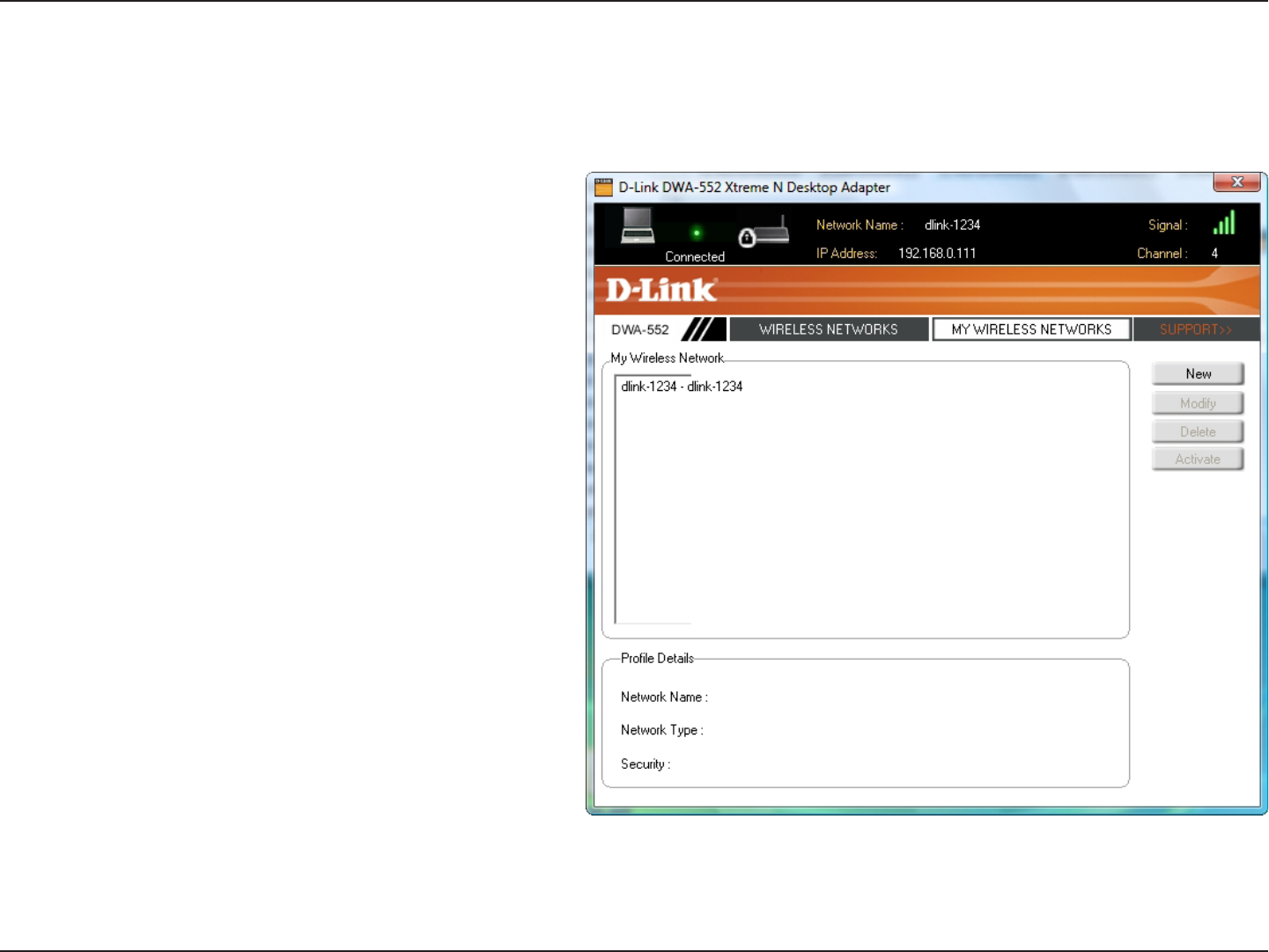 The My Wireless Networks page will allow you to create, edit, and delete wireless network profiles. Every time you
