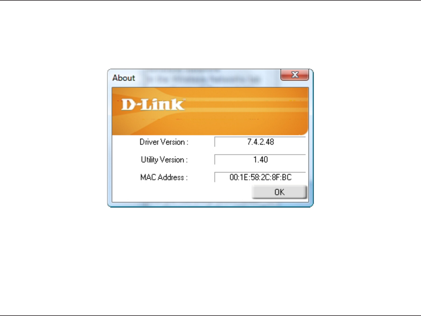 The About screen gives you information about the Firmware and Utility Versions of the DWA-552.