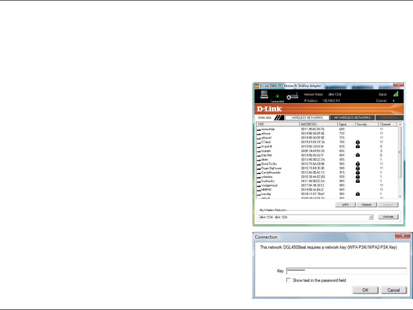 of your wireless adapter for help with connecting to a wireless network. Most utilities will have a “site survey” option