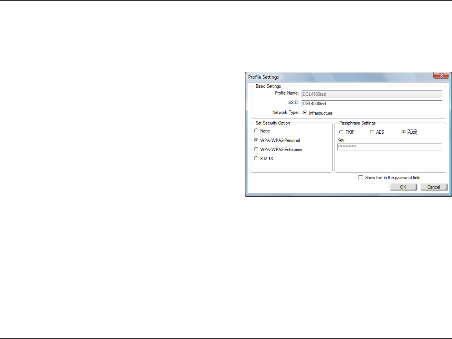 wireless adapter. Make sure you enter the passphrase exactly the same on all wireless devices.