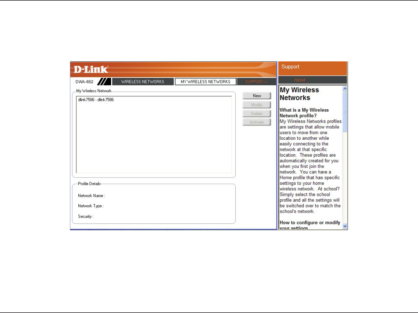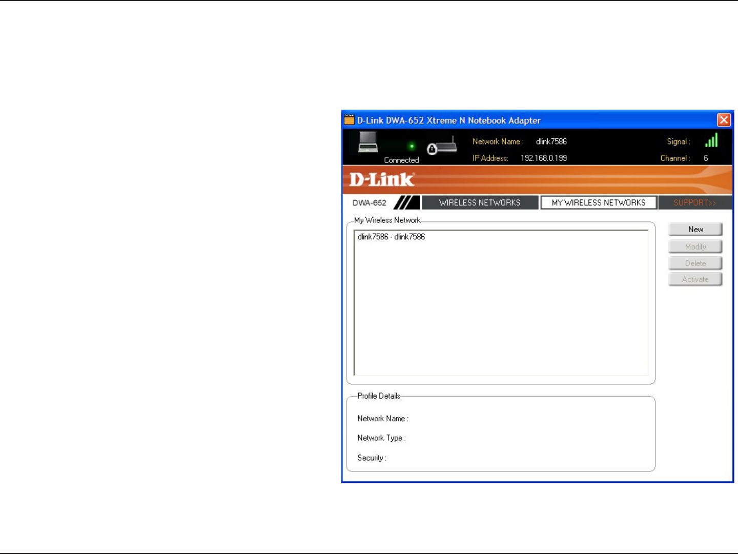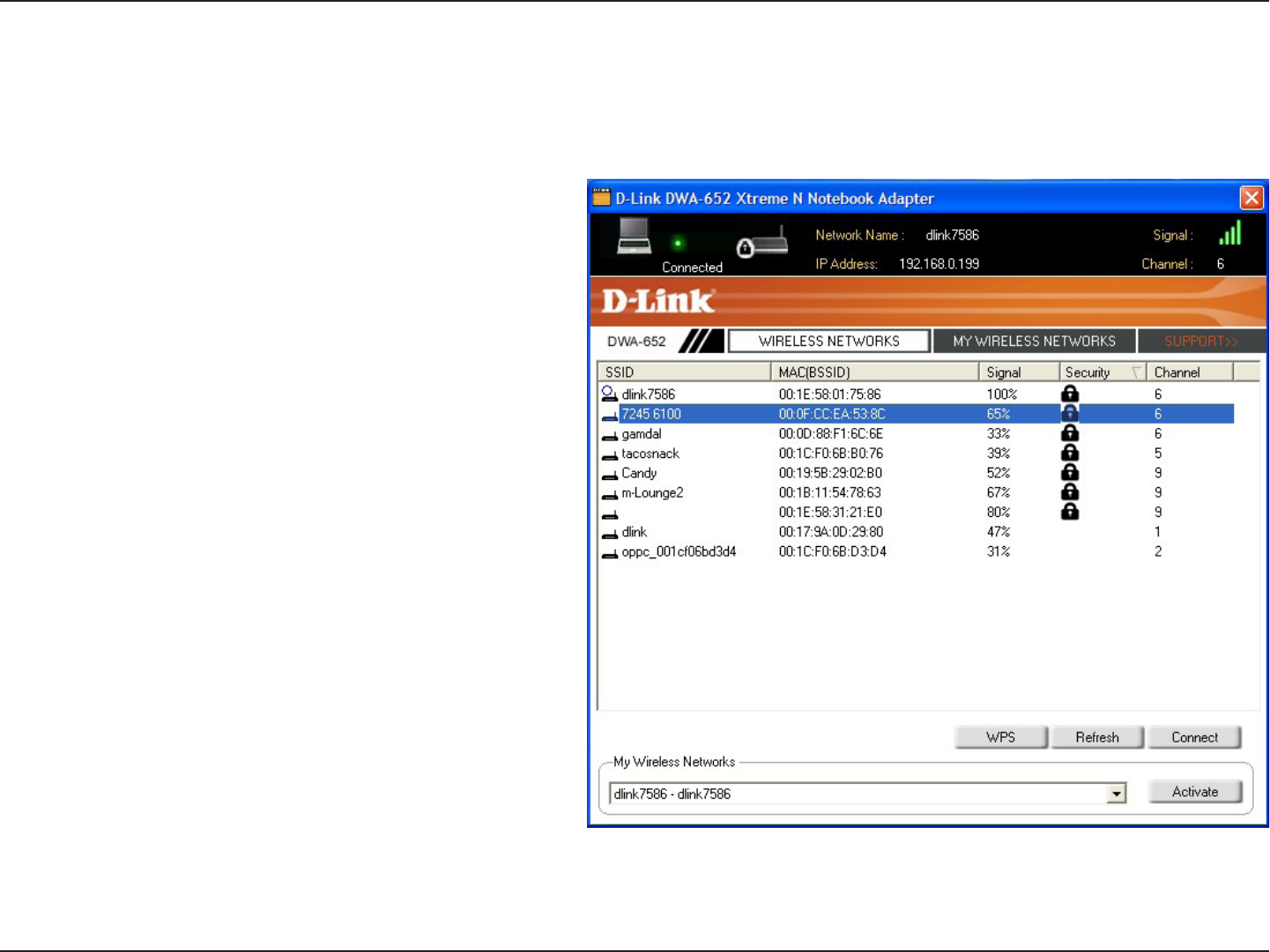 The D-Link DWA-652 uses the Wireless Connection Manager as the management software. The manager provides
