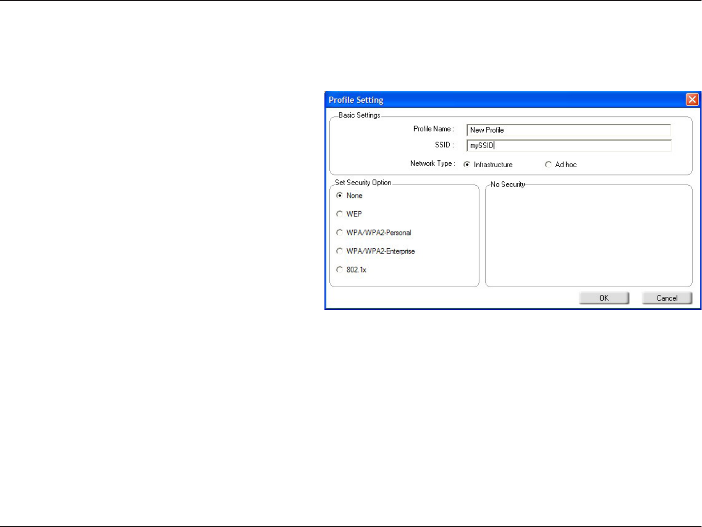 1. Open the Wireless Connection Manager by double-clicking on the D-Link icon on your desktop. Click on New to