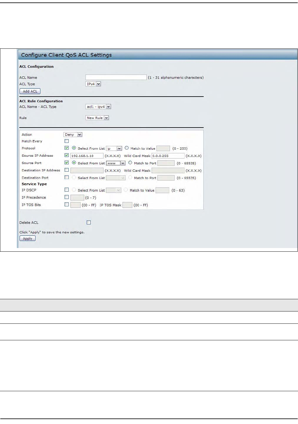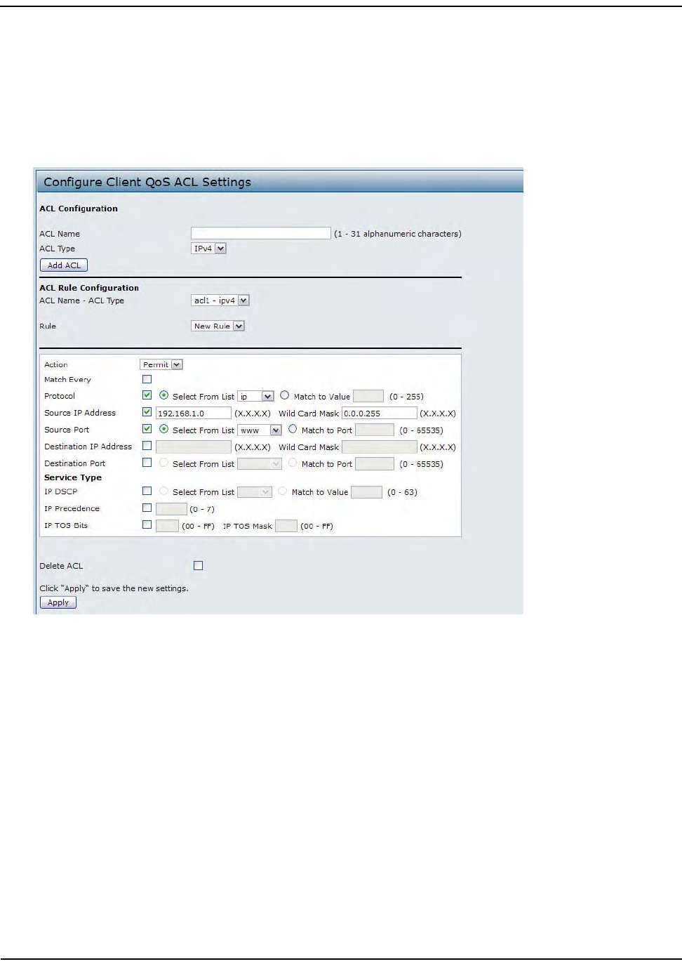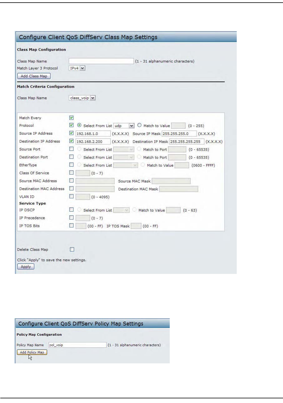•SetapQosDsClassMapMatchSrcIpAddressto192.168.1.0.