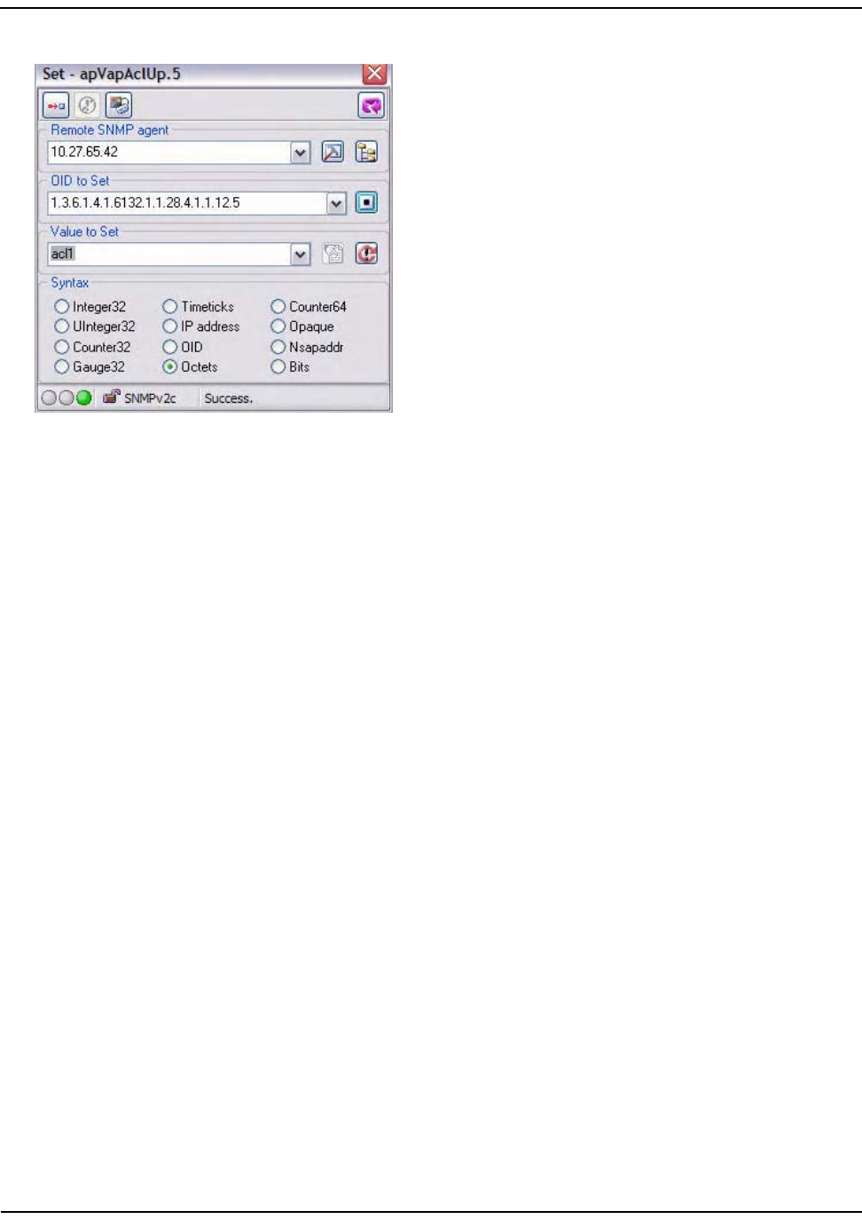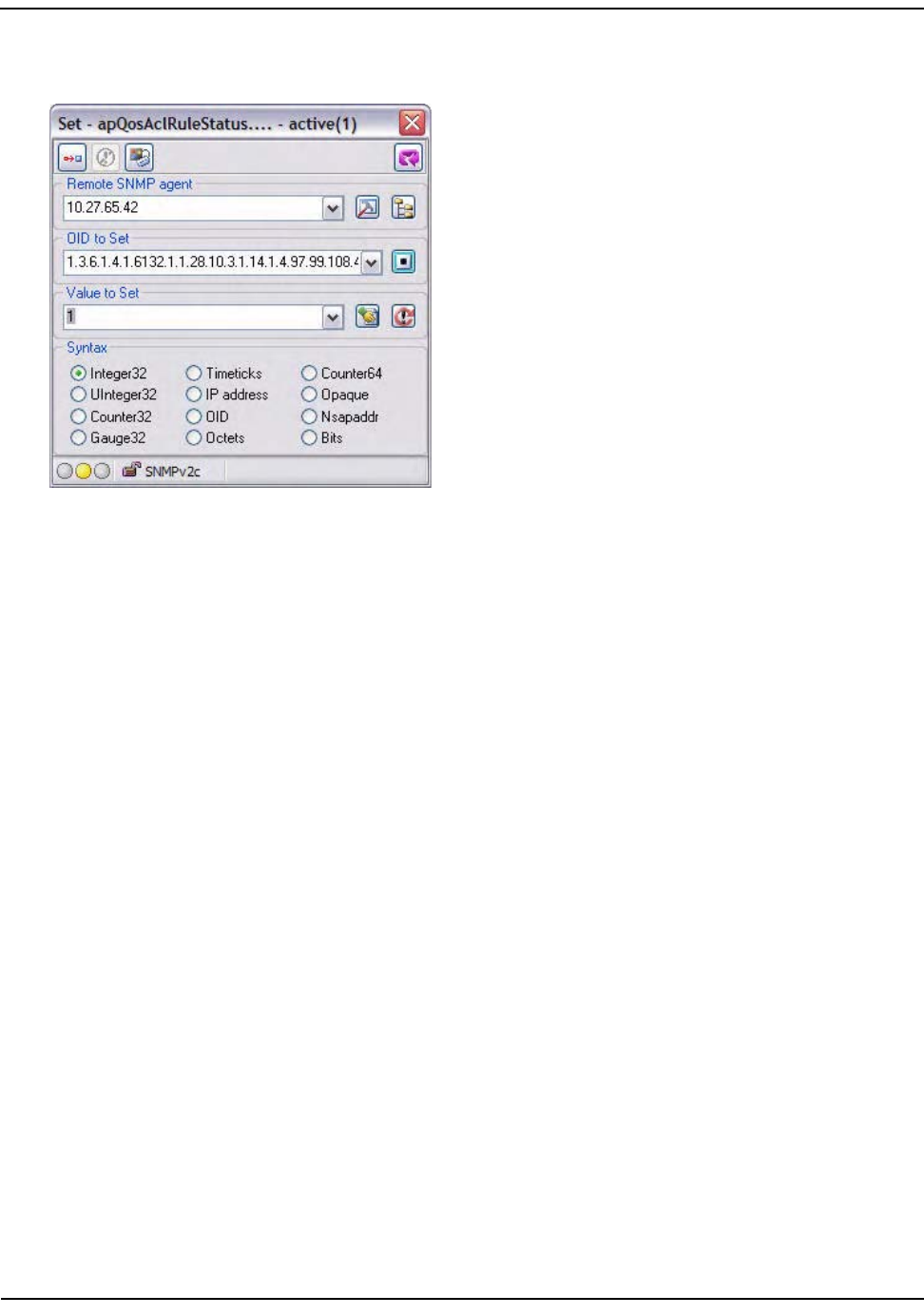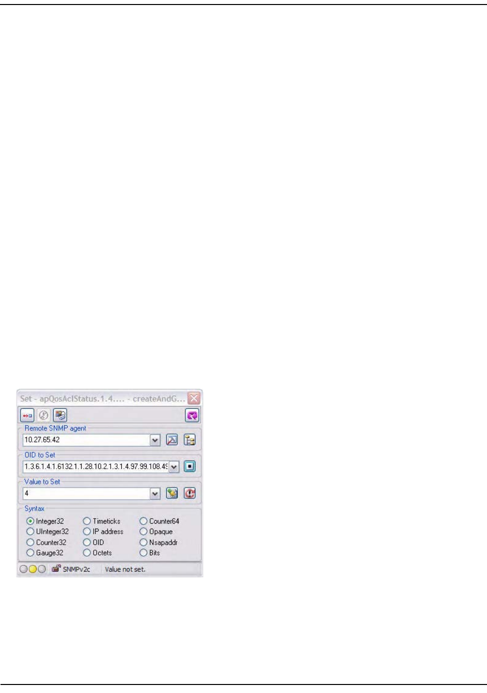 IntheOID,the14(bold)isthesequenceidentifierfortheapQosAclRuleStatussobject,1istheACLtype,