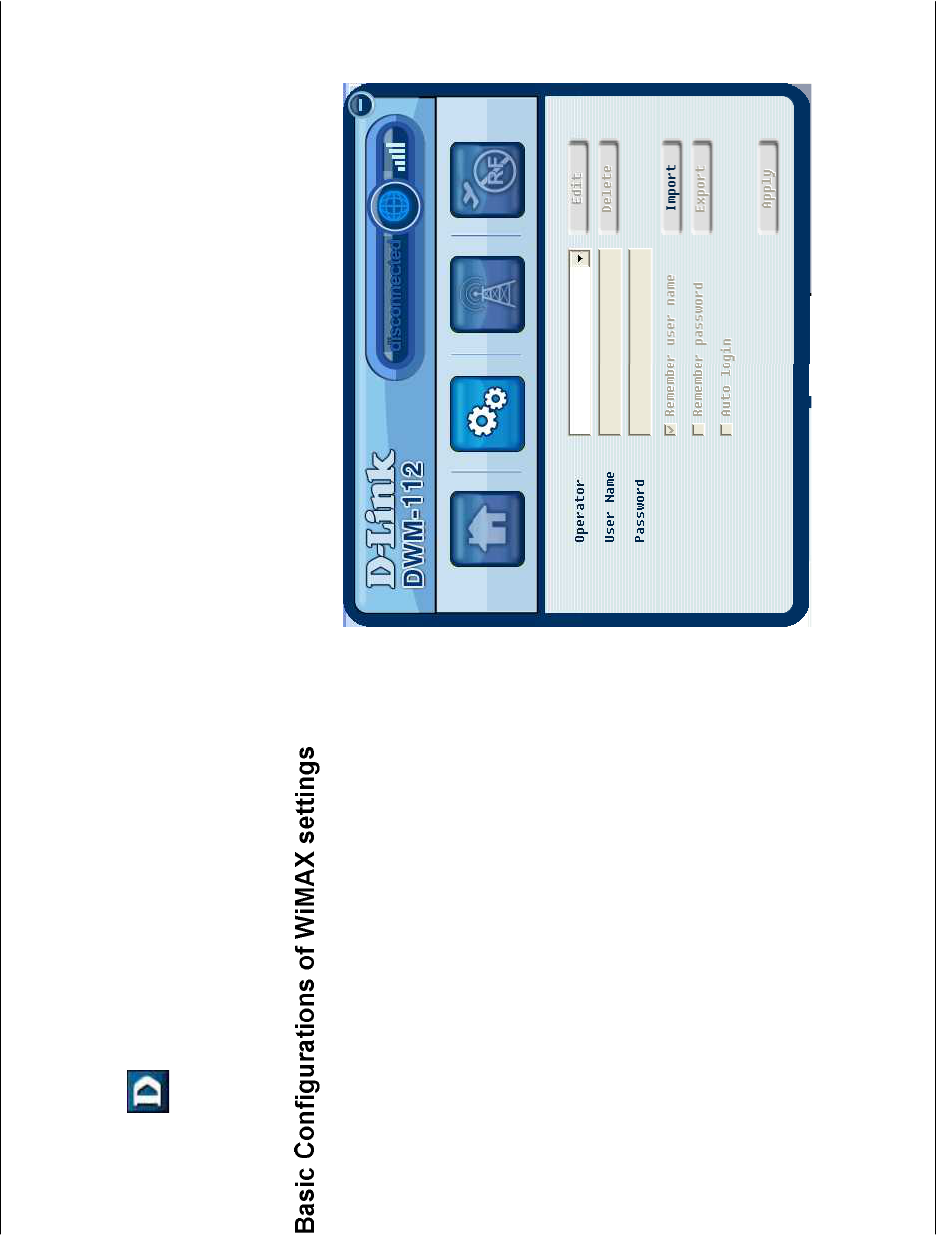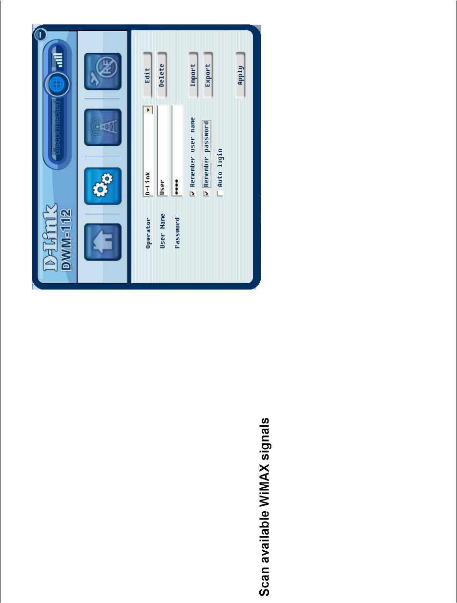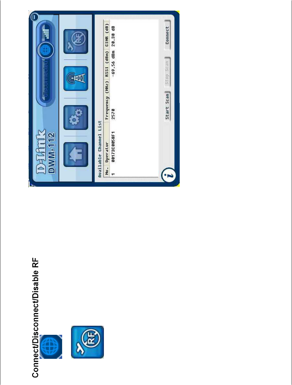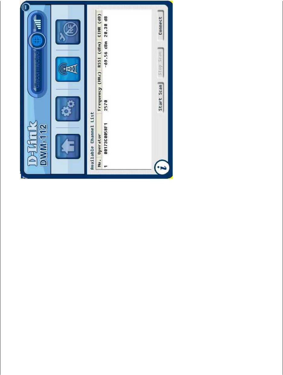 Click Start > Programs > D-Link > DWM-112 WiMAX Adapter > D-Link WiMAX Utility (User mode) to start the utility, or
