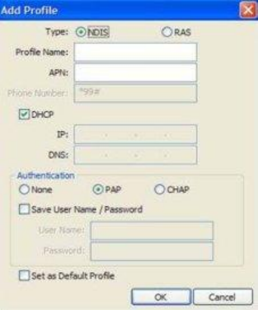You can create your own personal profile. The Data Card supports two types of profile: RAS and NDIS.