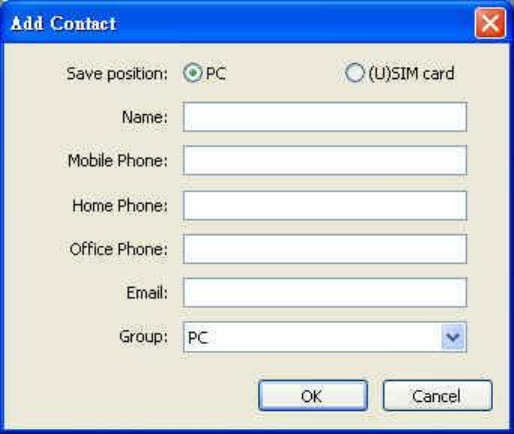 3. In the Add Contact window, enter the name and telephone number of the contact, and where to store the details