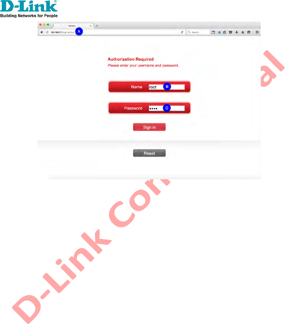 a. http://192.168.17.1!with!account/password:!root/root!for!(A)!and!(B)!in!the!figure!3.!