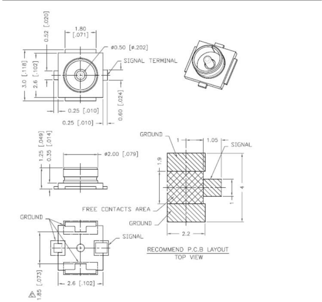 The DWM-800A module provides an interface for RF antenna by Connector: DWM-800A uses HRS’s U.FL-R-SMT