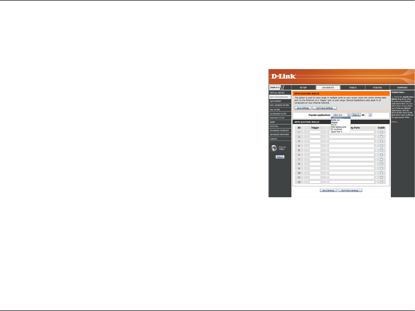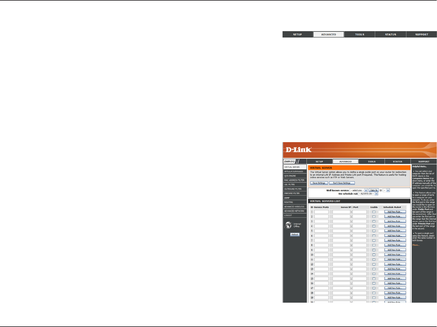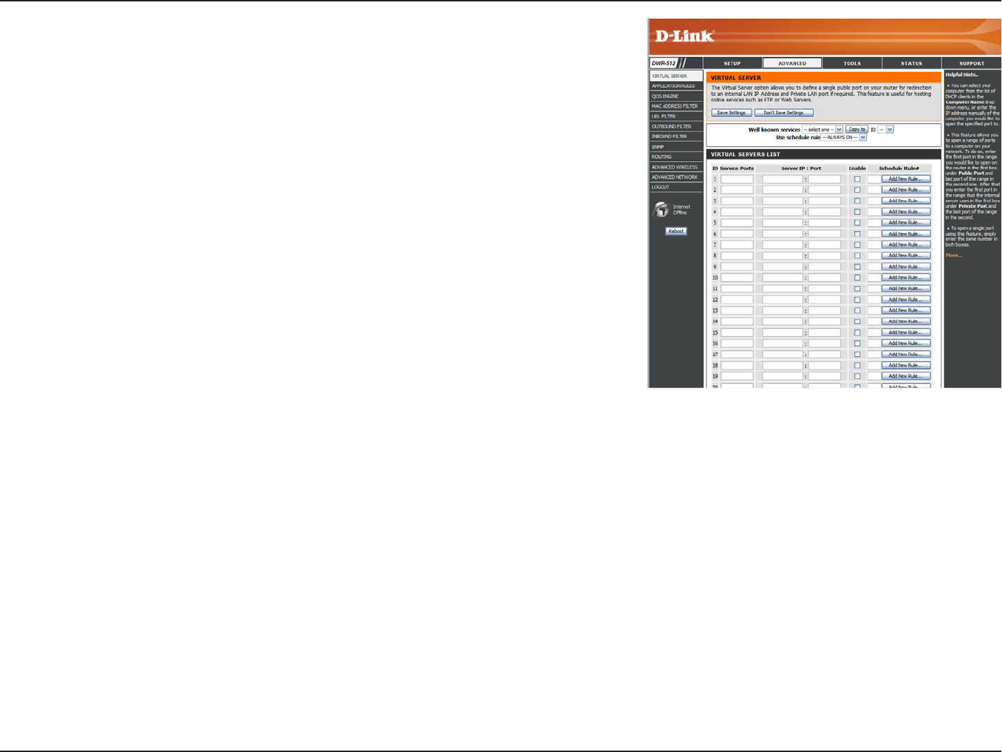 to packets that are destined for Virtual Servers or DMZ hosts. After modifying any settings, click Save Settings to save your changes.