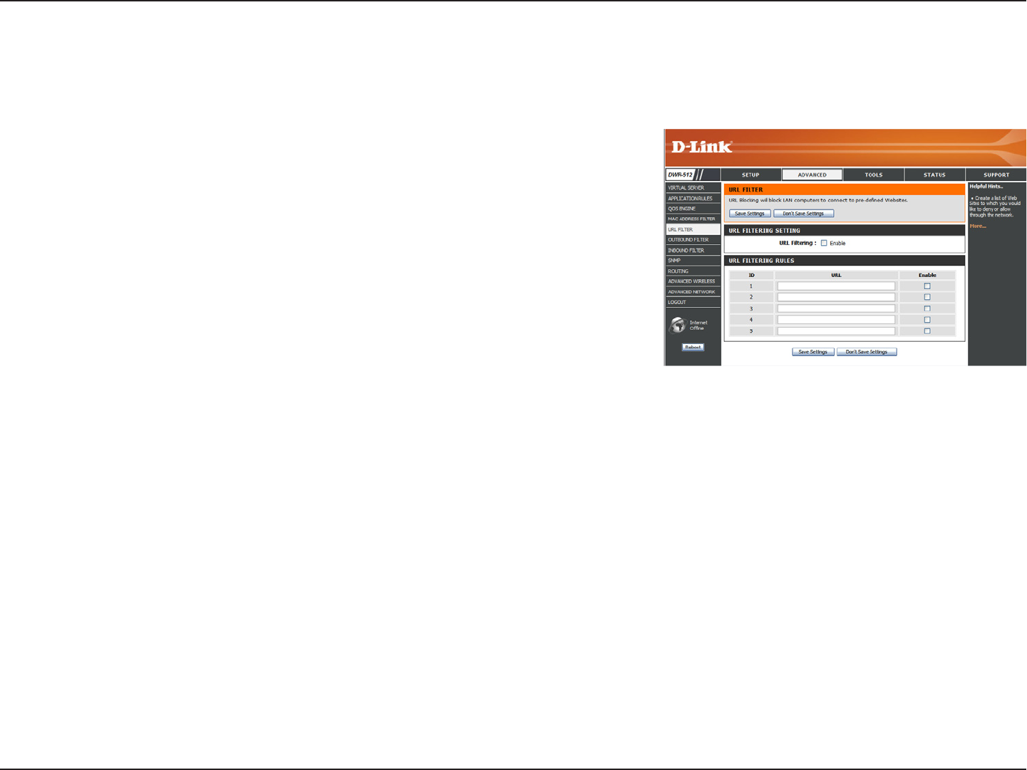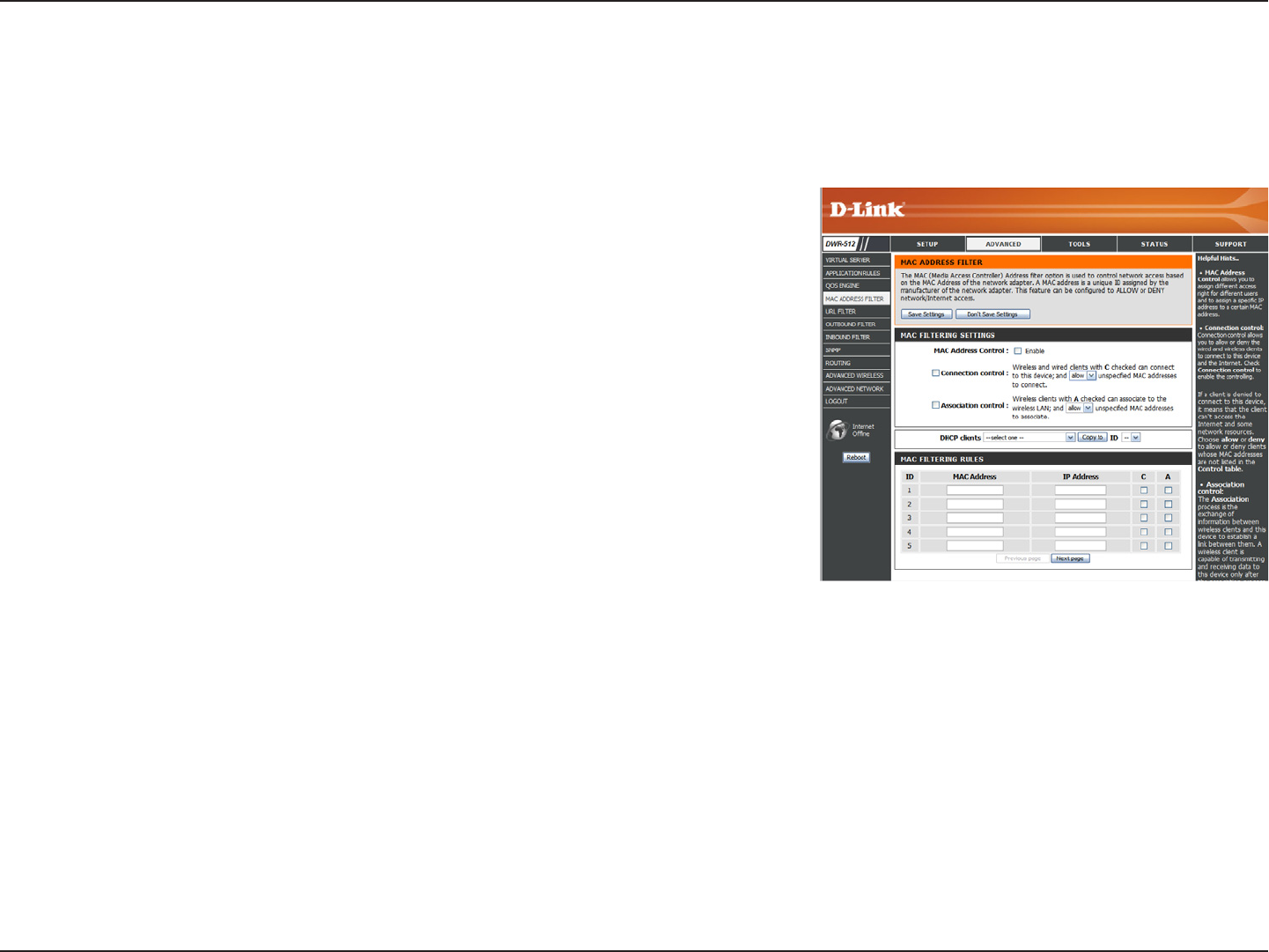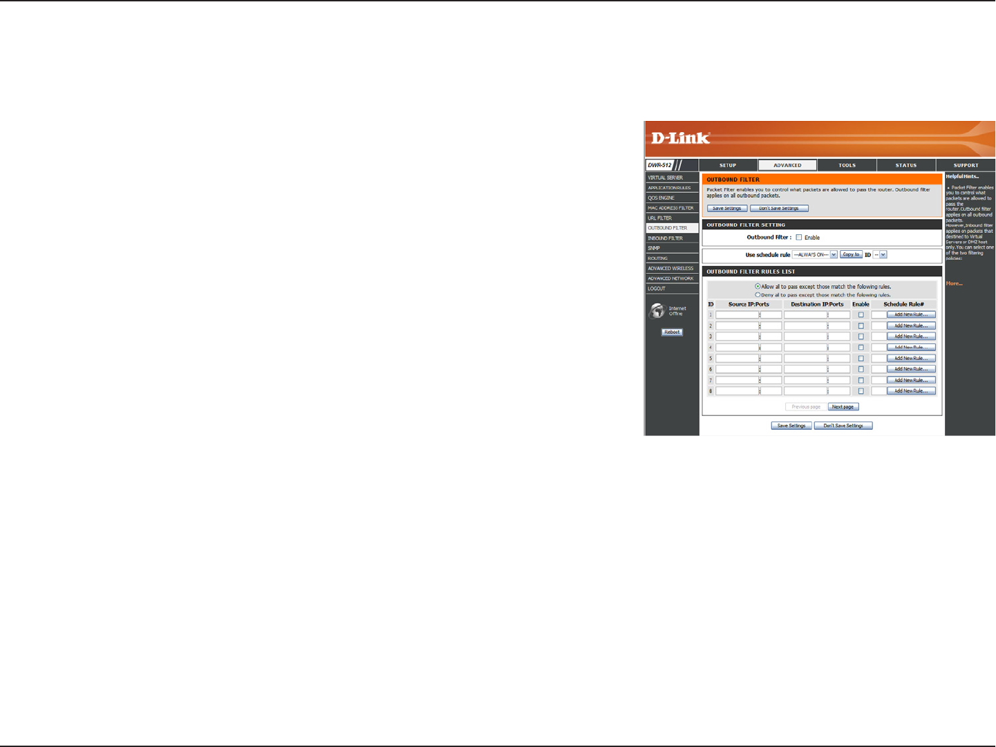 Inbound Filter enables you to control what packets are allowed to come in to your network from the Internet. The inbound lter only applies