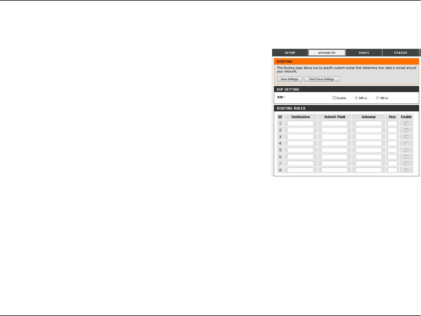 The routing page allows you to specify custom routes that determine how data is moved around your network. After modifying any settings, click