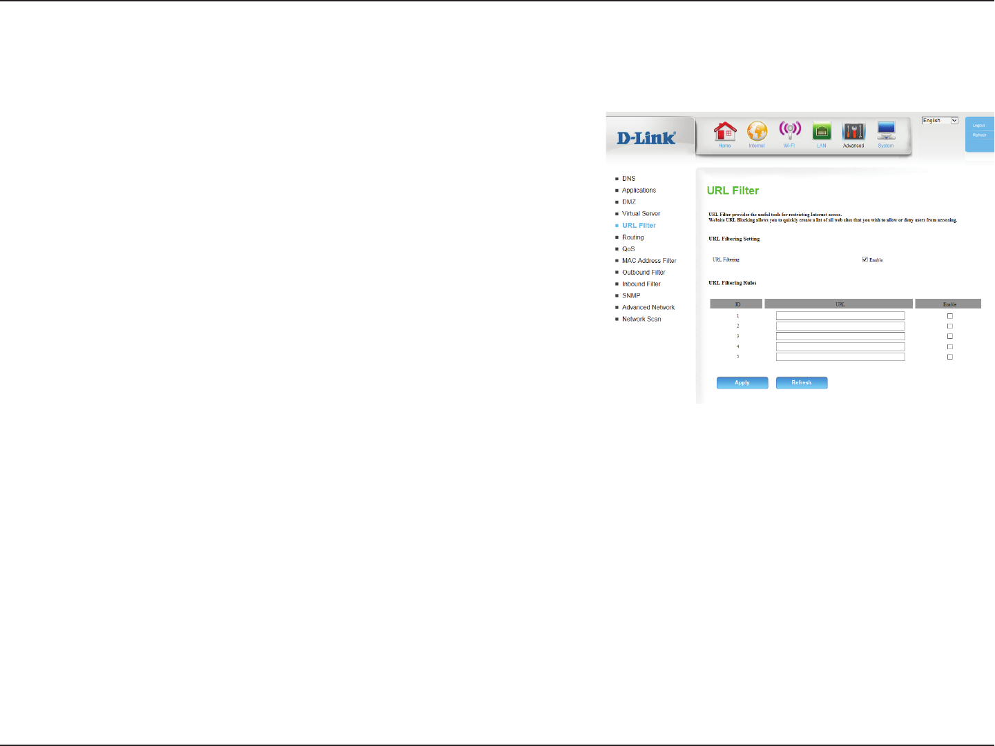 URL Filter allows you to set up a list of websites that will be blocked from users on your network.