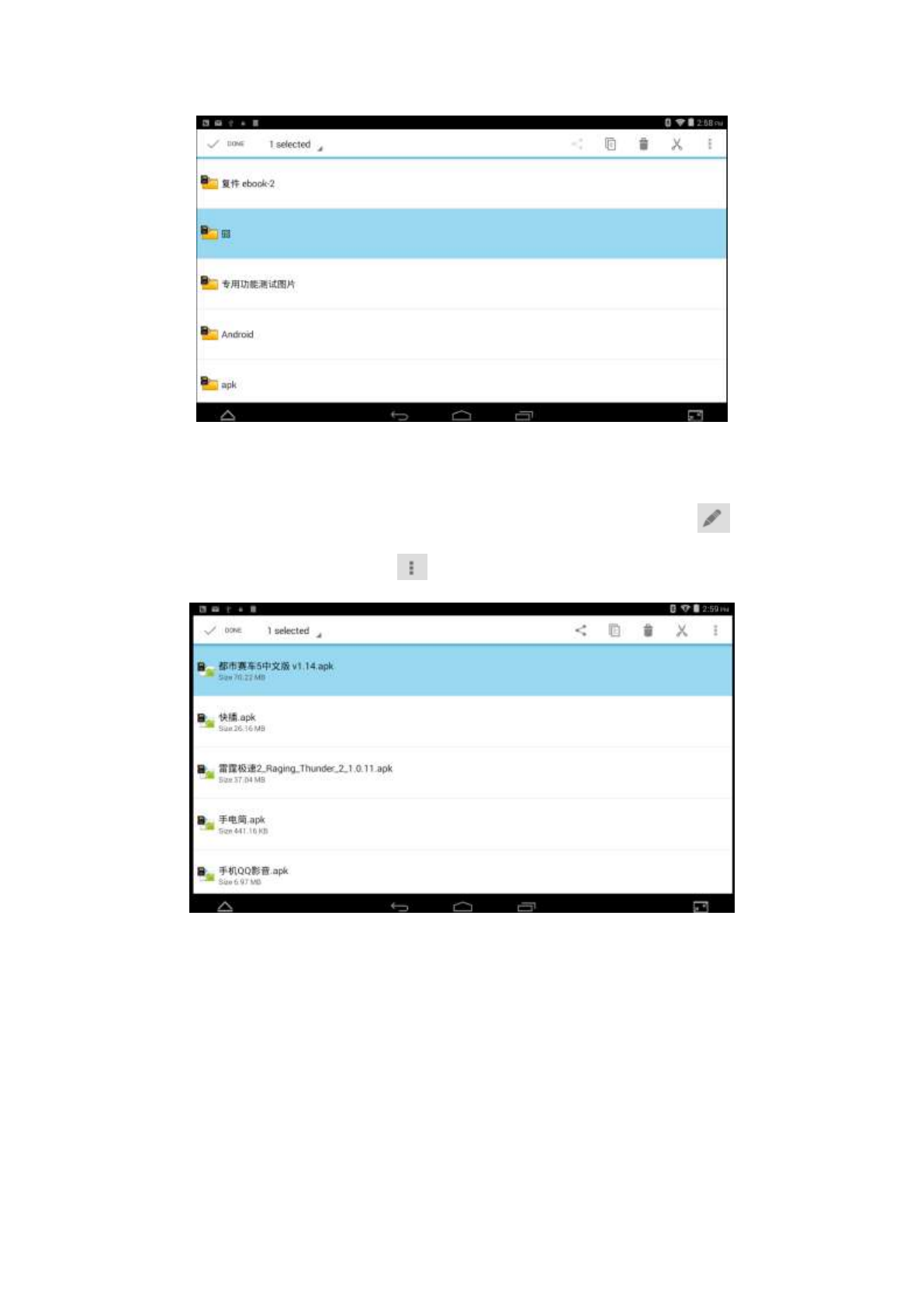 d、Install apk file:Choose the file suffixed .apk in the file manager, you can install the third part