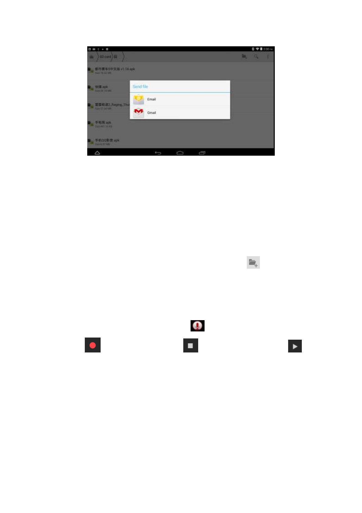 C. Share file:choose any file, long press it, it will popup “share”, choose the share way you want