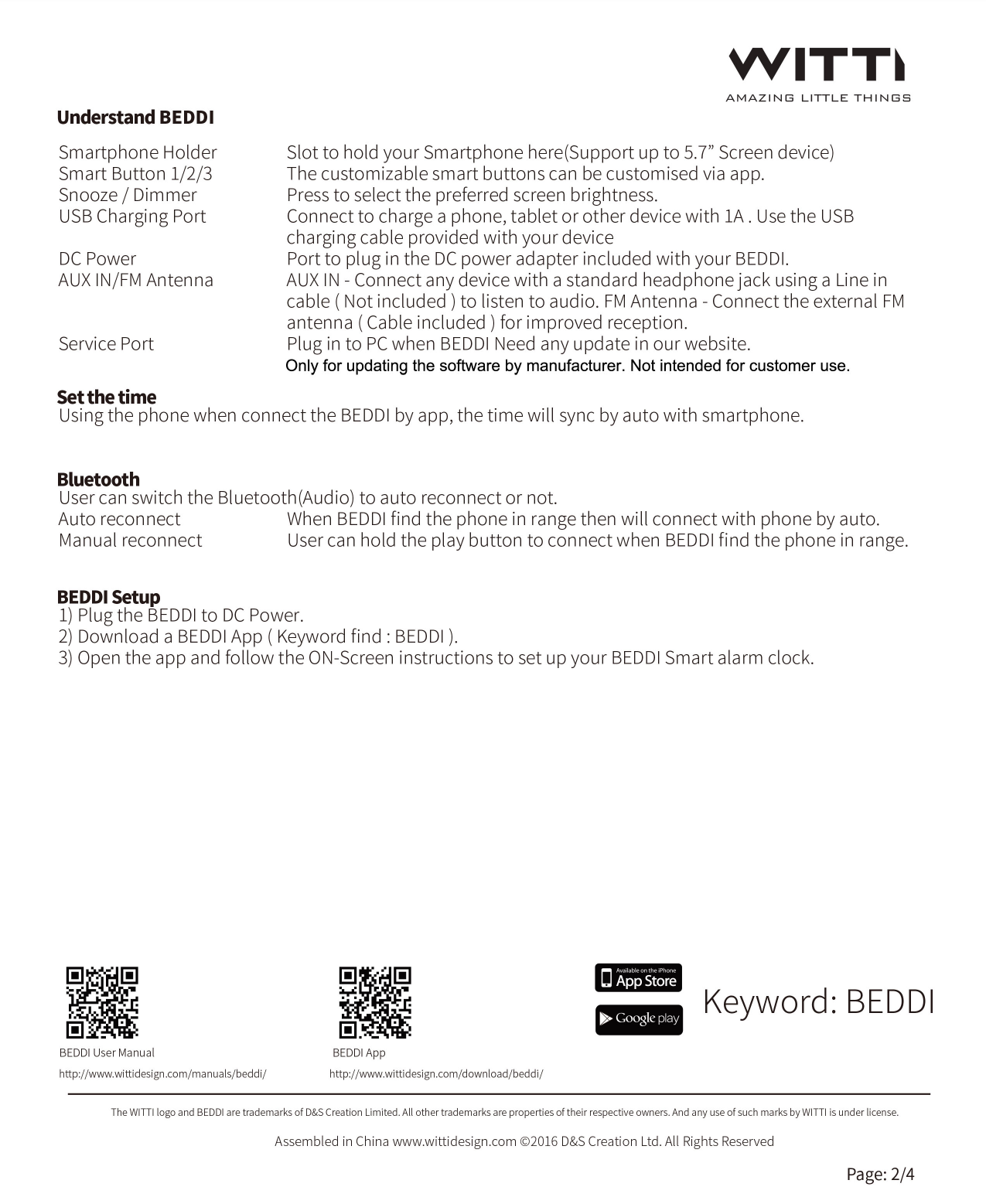 D&S; Creation Limited Bluetooth Smart Home Alarm Clock BEDDI Instruction Manual 31 3 2016 Lib