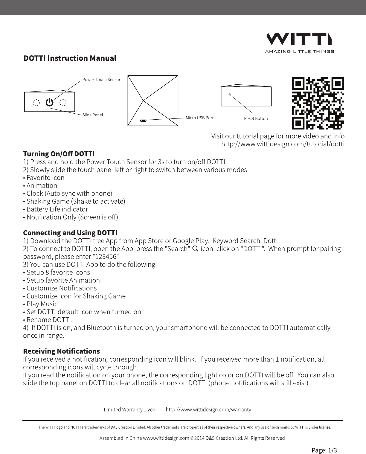 D and S Creation DOTTI6821 Dotti User Manual DOTTI instruction manual 12 12 2014