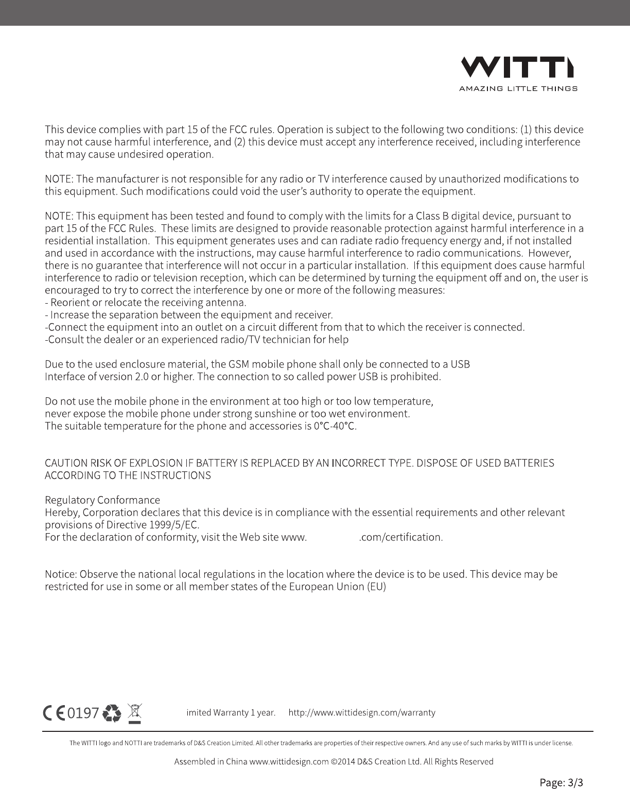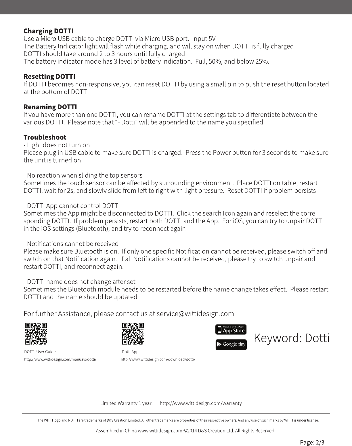 D&S; Creation Limited Dotti DOTTI instruction manual 12 12 2014