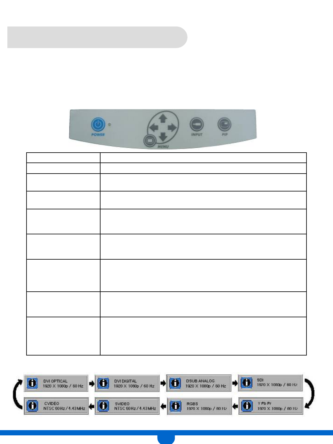Power, Menu, PIP, Up, Down, Plus, Minus, Input