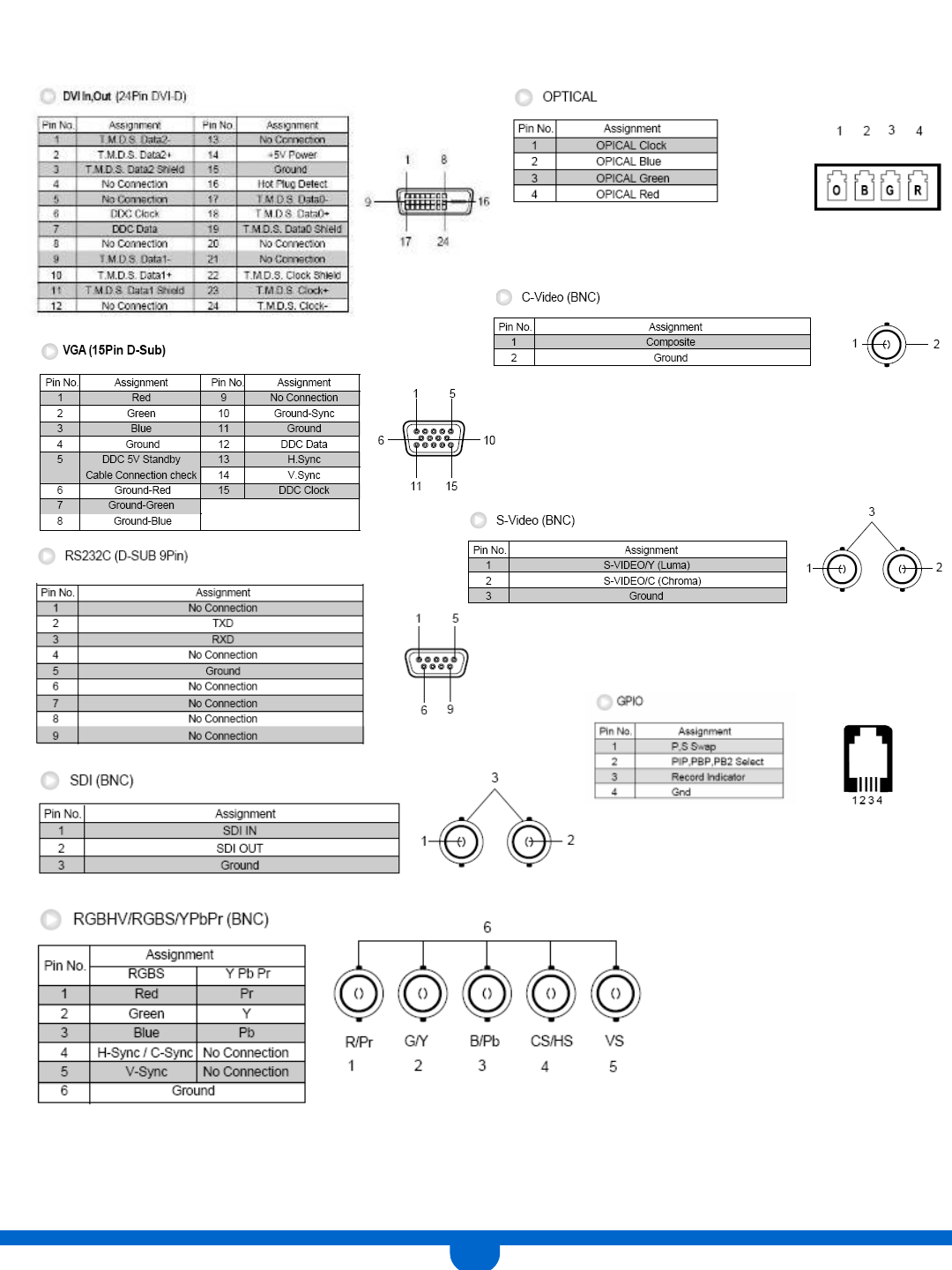 5 x BNC (Component Y/G, Pb/B, Pr/R, H/CS,VS Input)