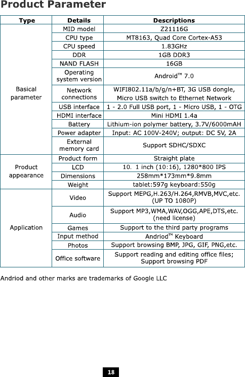 D2D Distributors Z21116G 10.1 Wifi Tablets User Manual ZAITH 10 1Inch