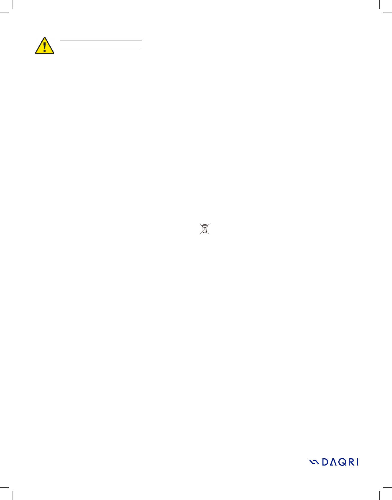 Do not take the product apart. Repairs and/or exchanges will be given at DAQRI’s sole