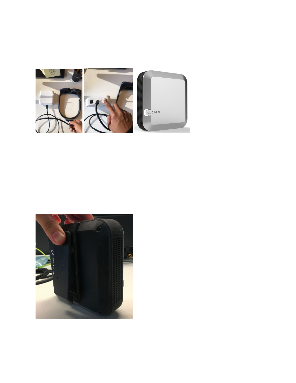 *In order to fully charge the DAQRI Compute Pack, connect the power supply to a wall outlet. You can use DSG while