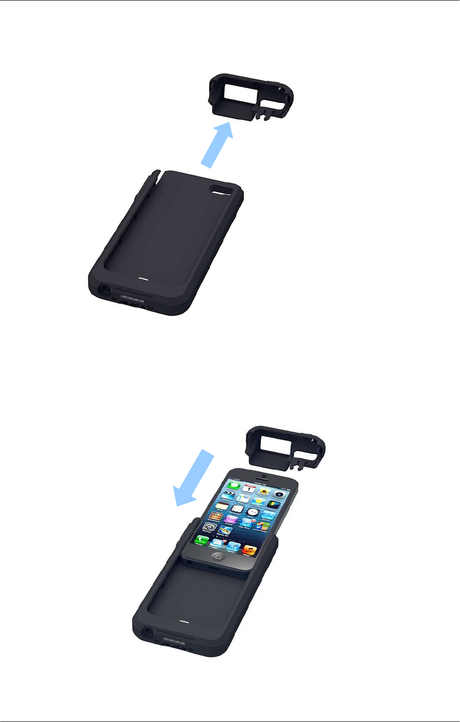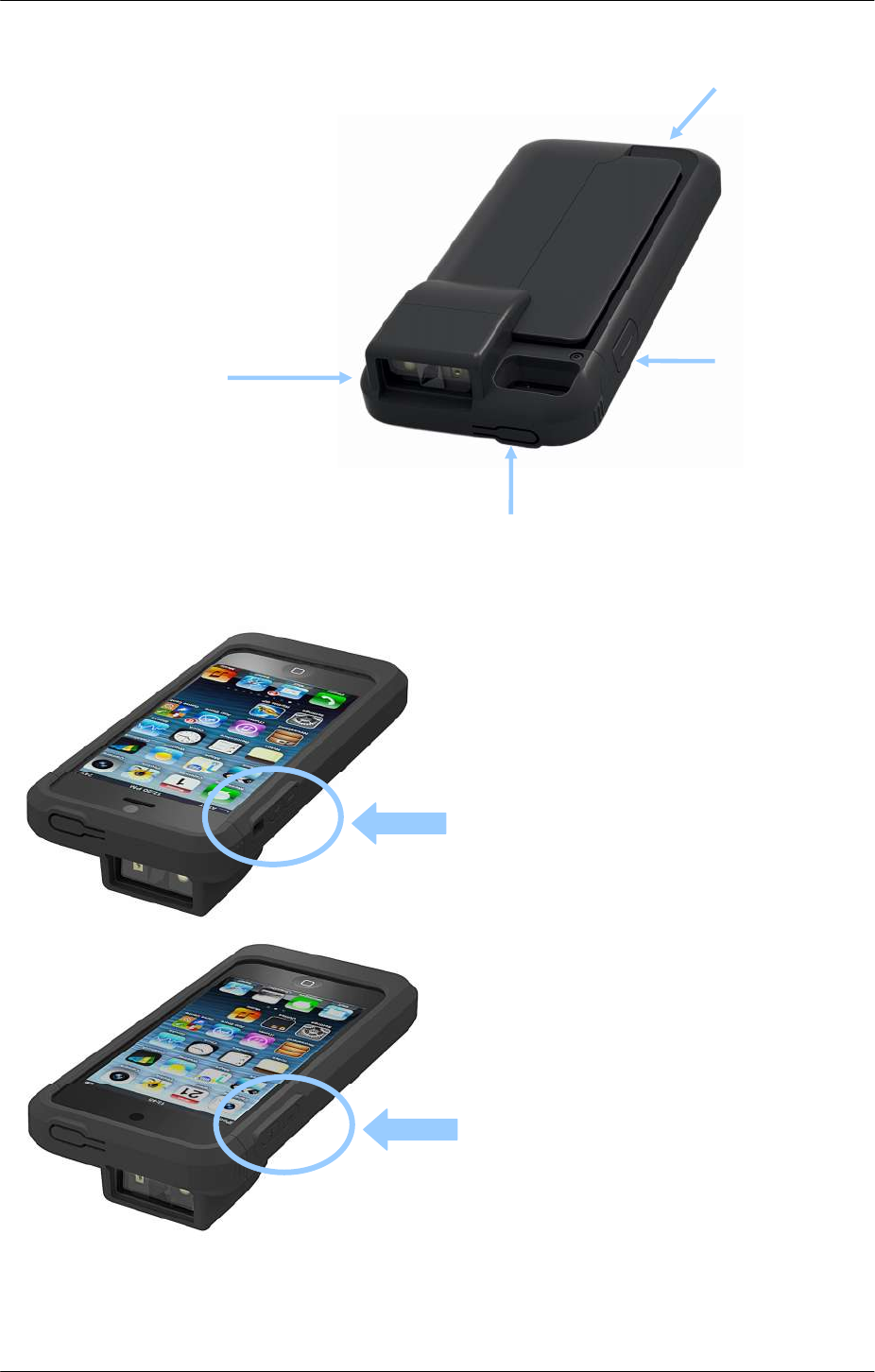 Step 2 – Slide the iPod 5 or iPhone 5 into Linea Pro 5. (Please, before attaching the