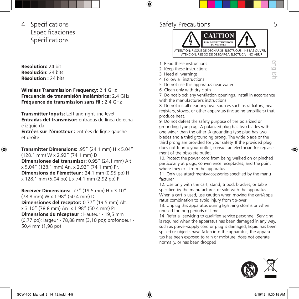 DEI Sales Inc. dba Definitive Technology SCW-100 Wireless SCW 100 Manual 6 14 12 indd