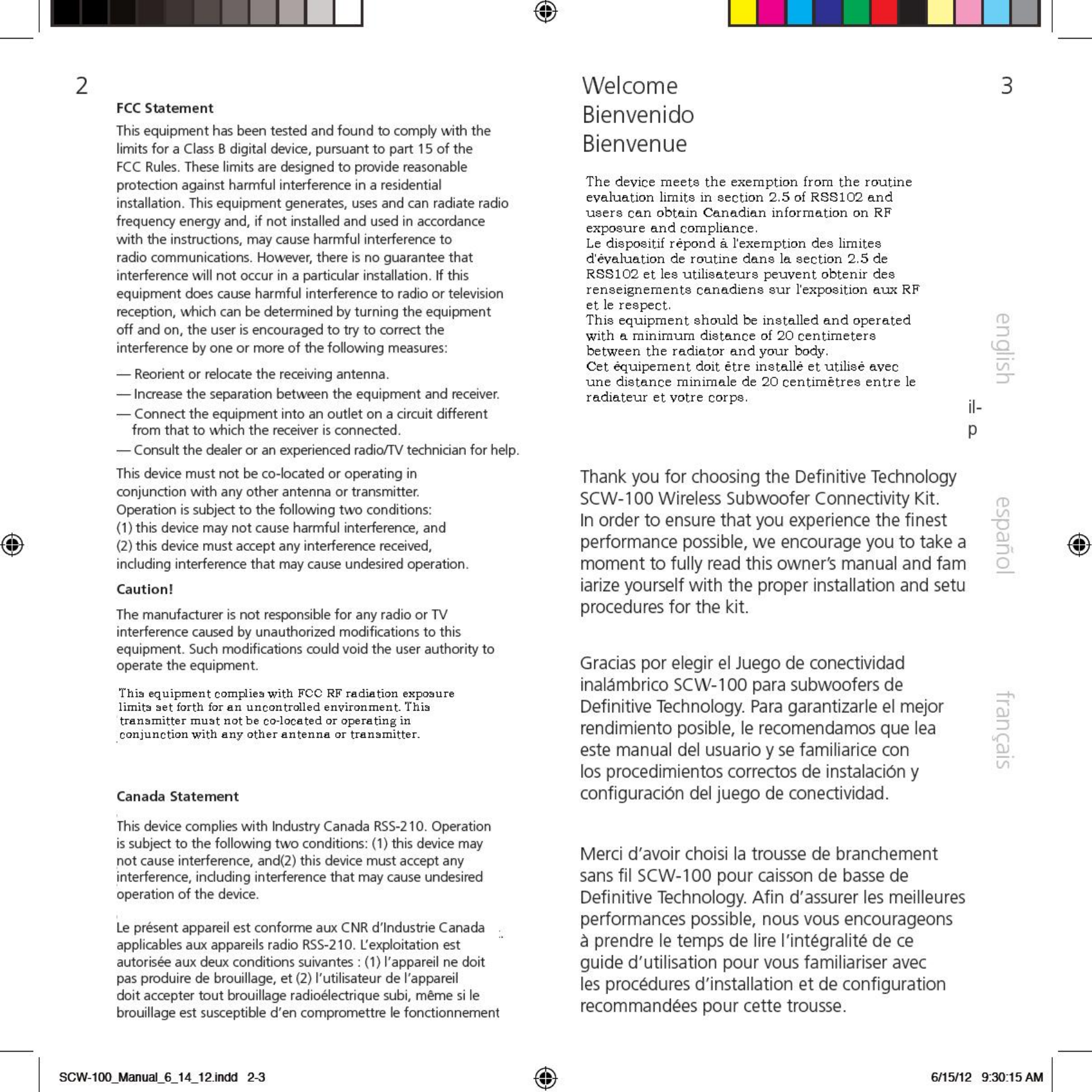 DEI Sales Inc. dba Definitive Technology SCW-100 Wireless SCW 100 Manual 6 14 12 indd