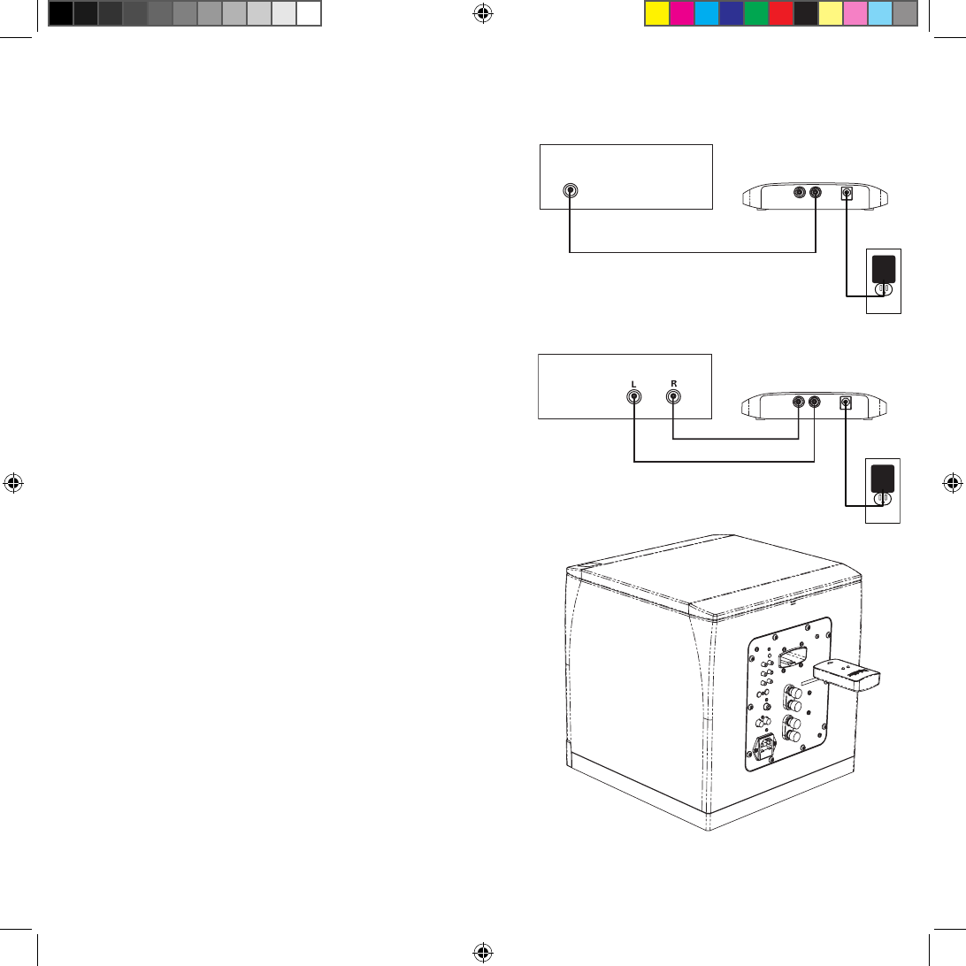 4. Para conectar el transmisor con los subwoofers, desenchufe el