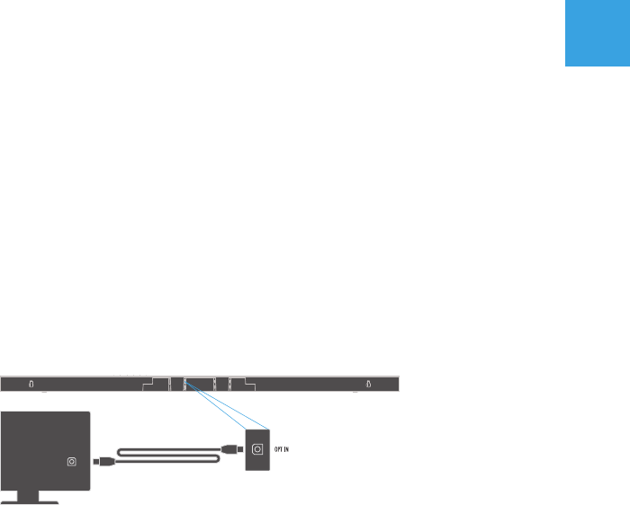 2. Place the sound bar on a at surface below your TV, connect the sound bar power