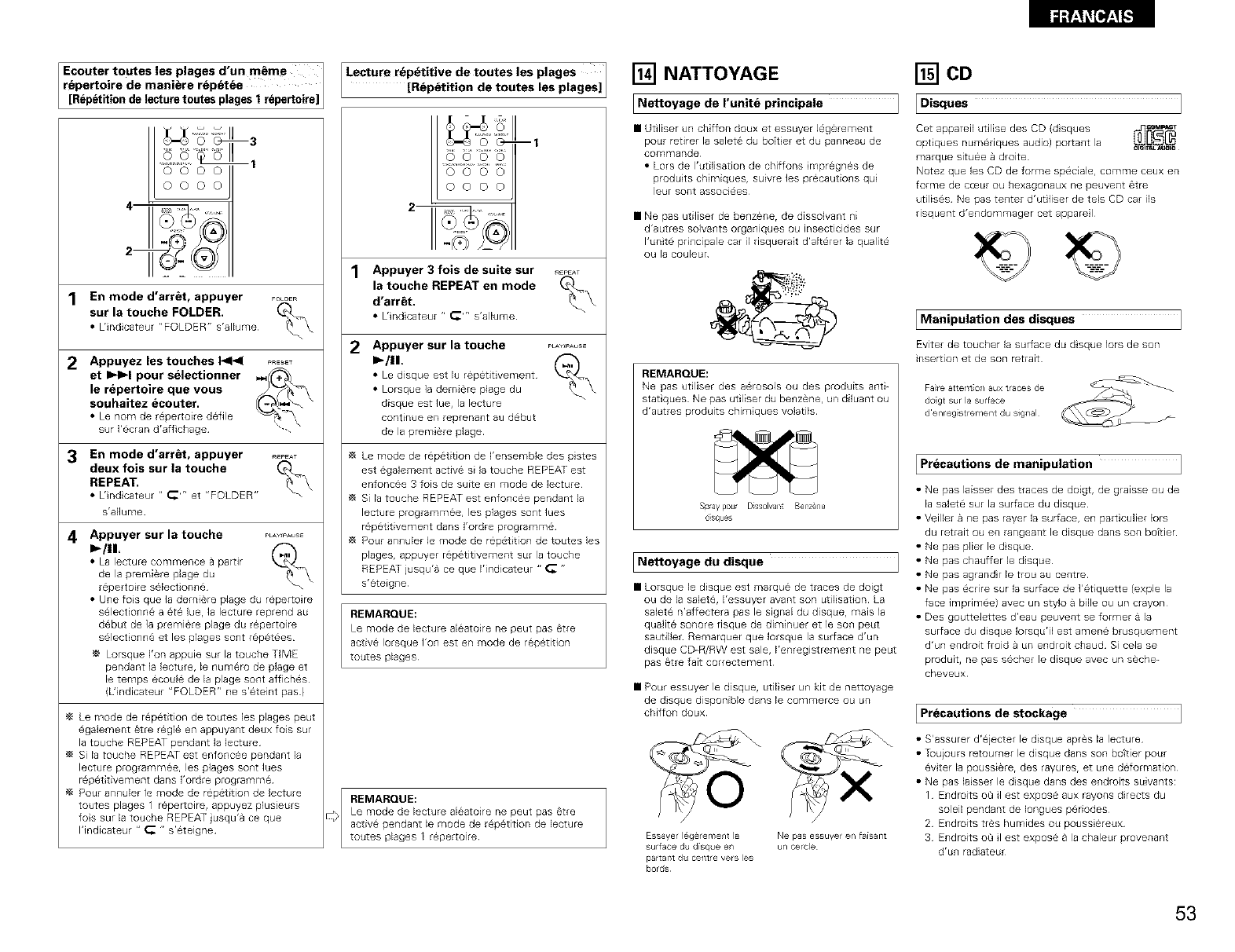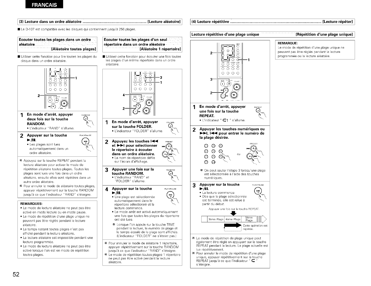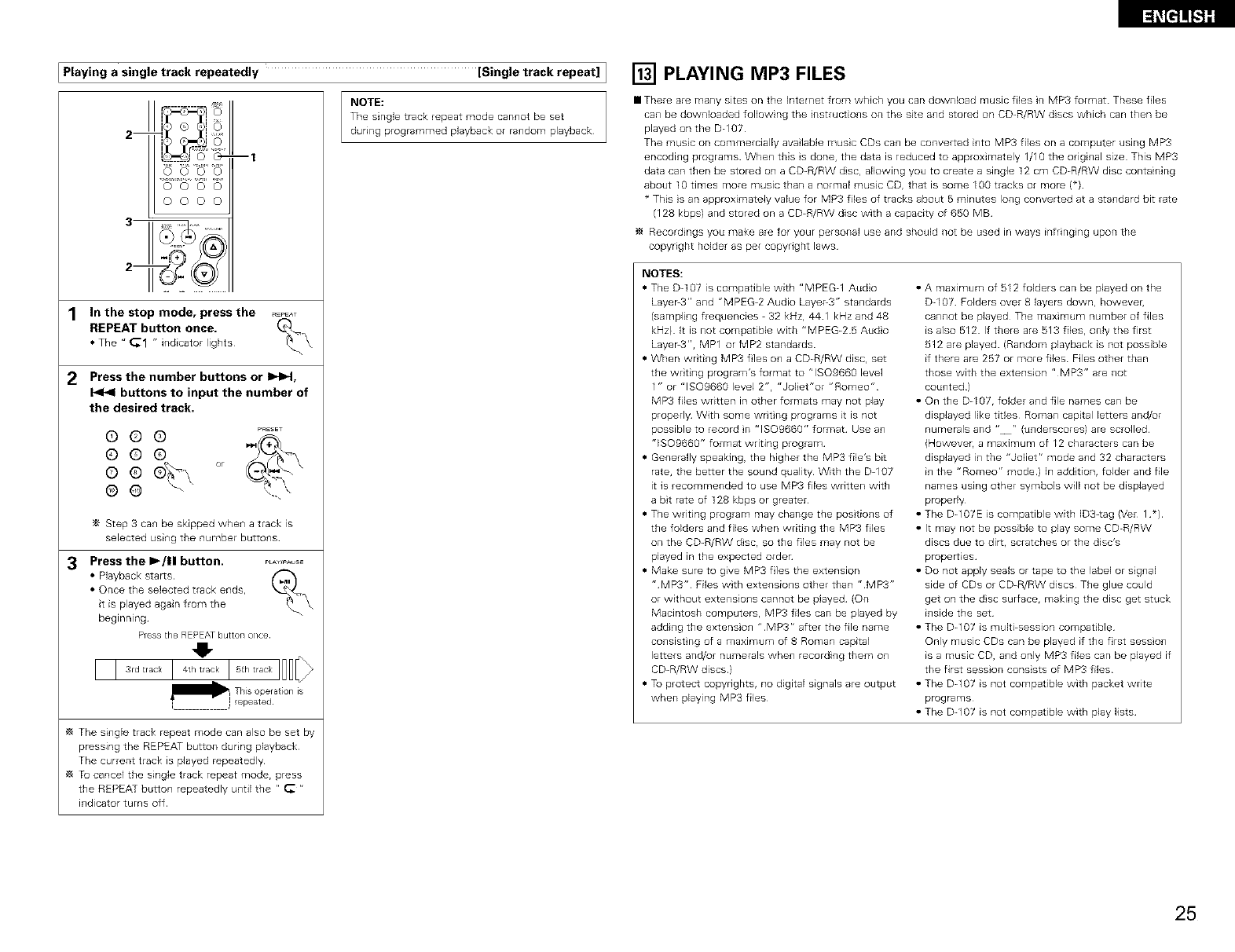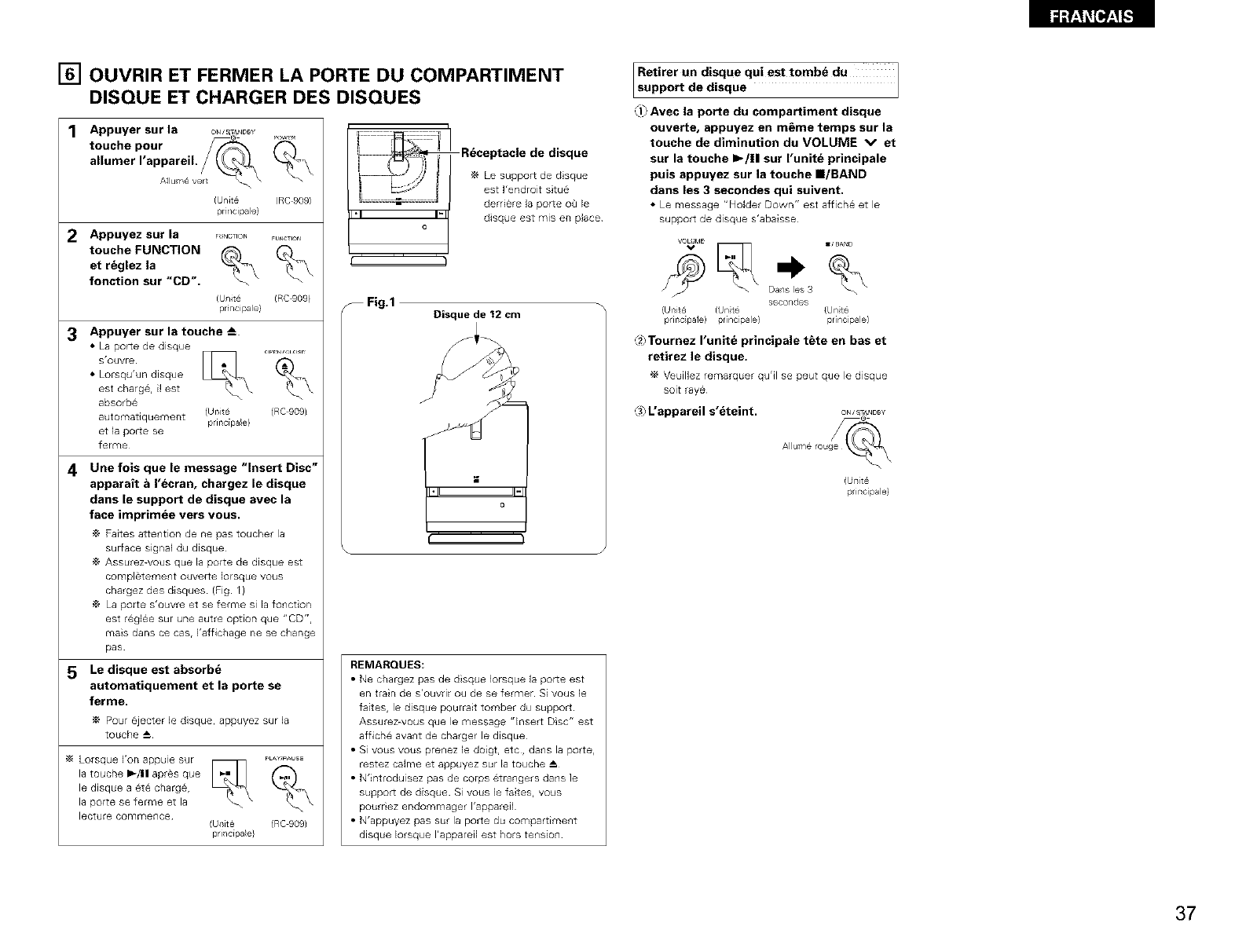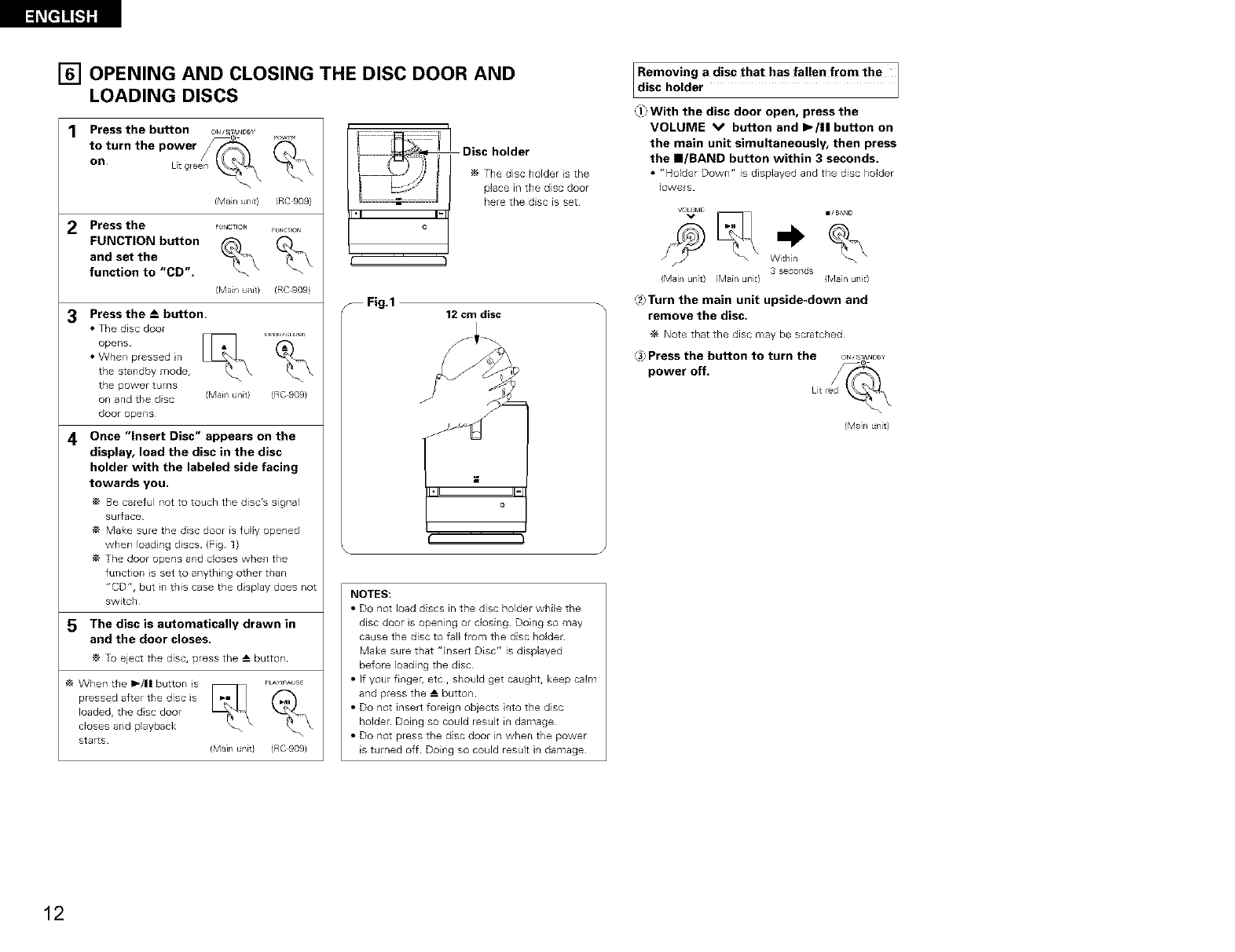 THE COMPACT DISC PLAYER SHOULD NOT BE