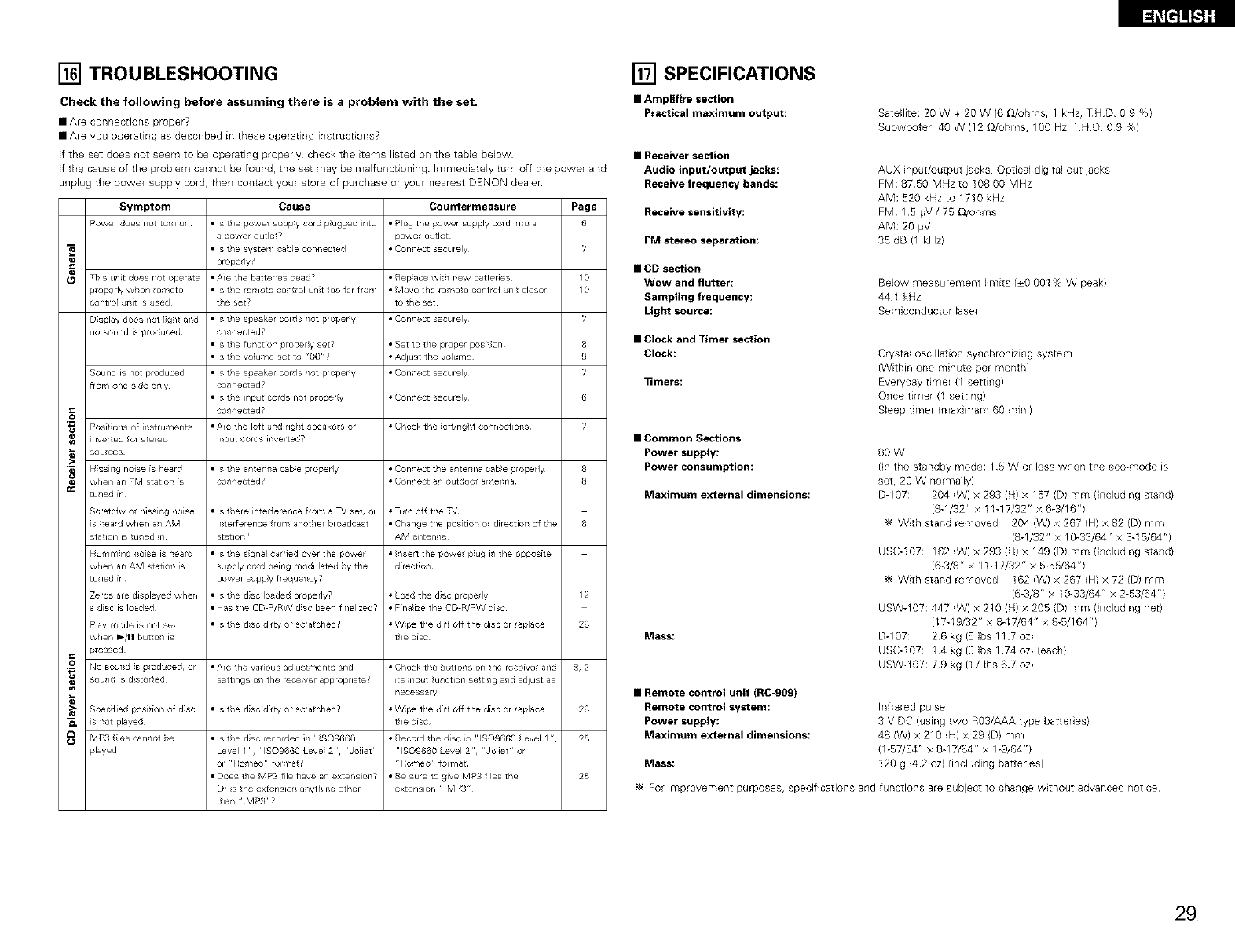 If problems occuE, contact your DENON DEALER
