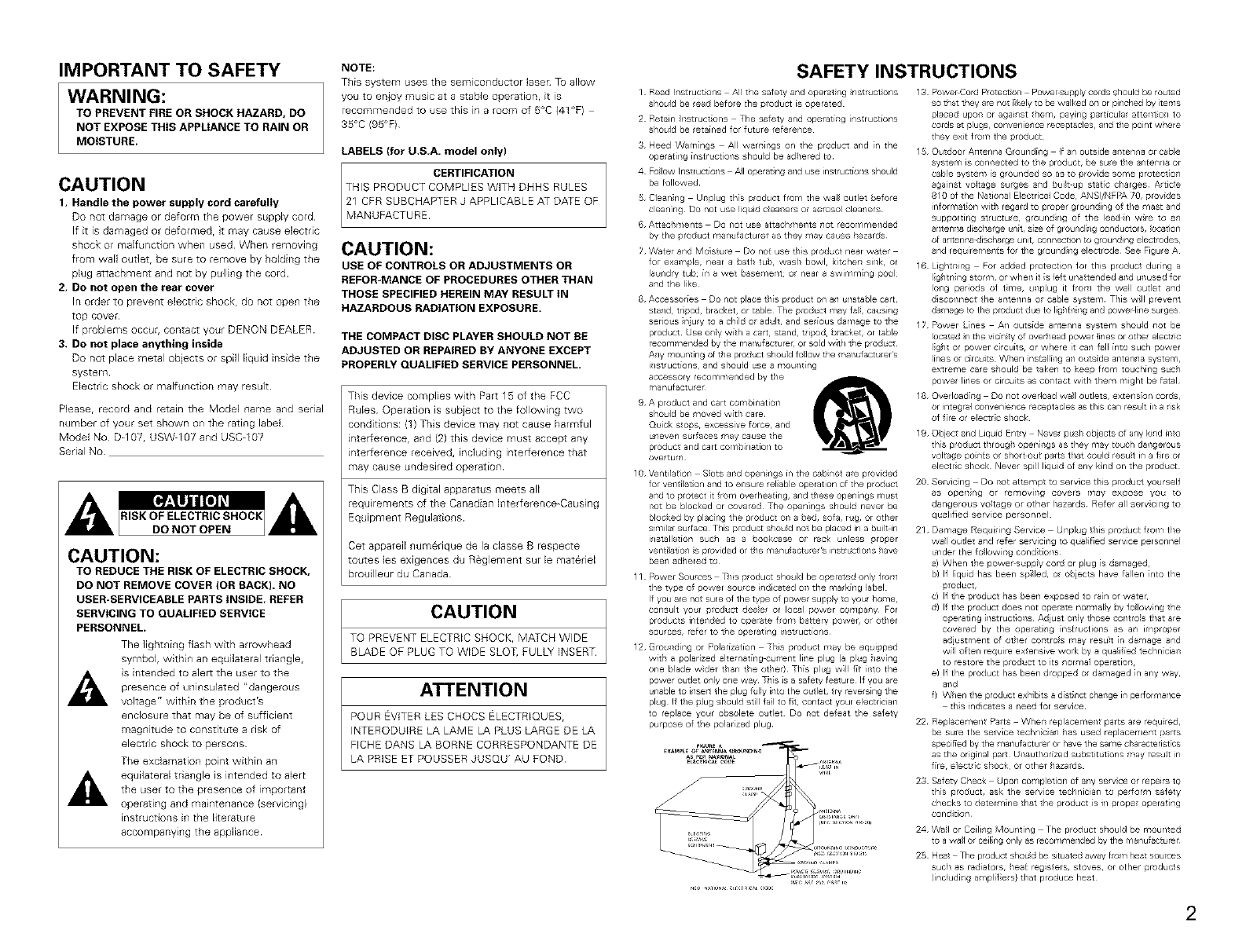 Model No D-107, USW-1O7 and USC-1O7