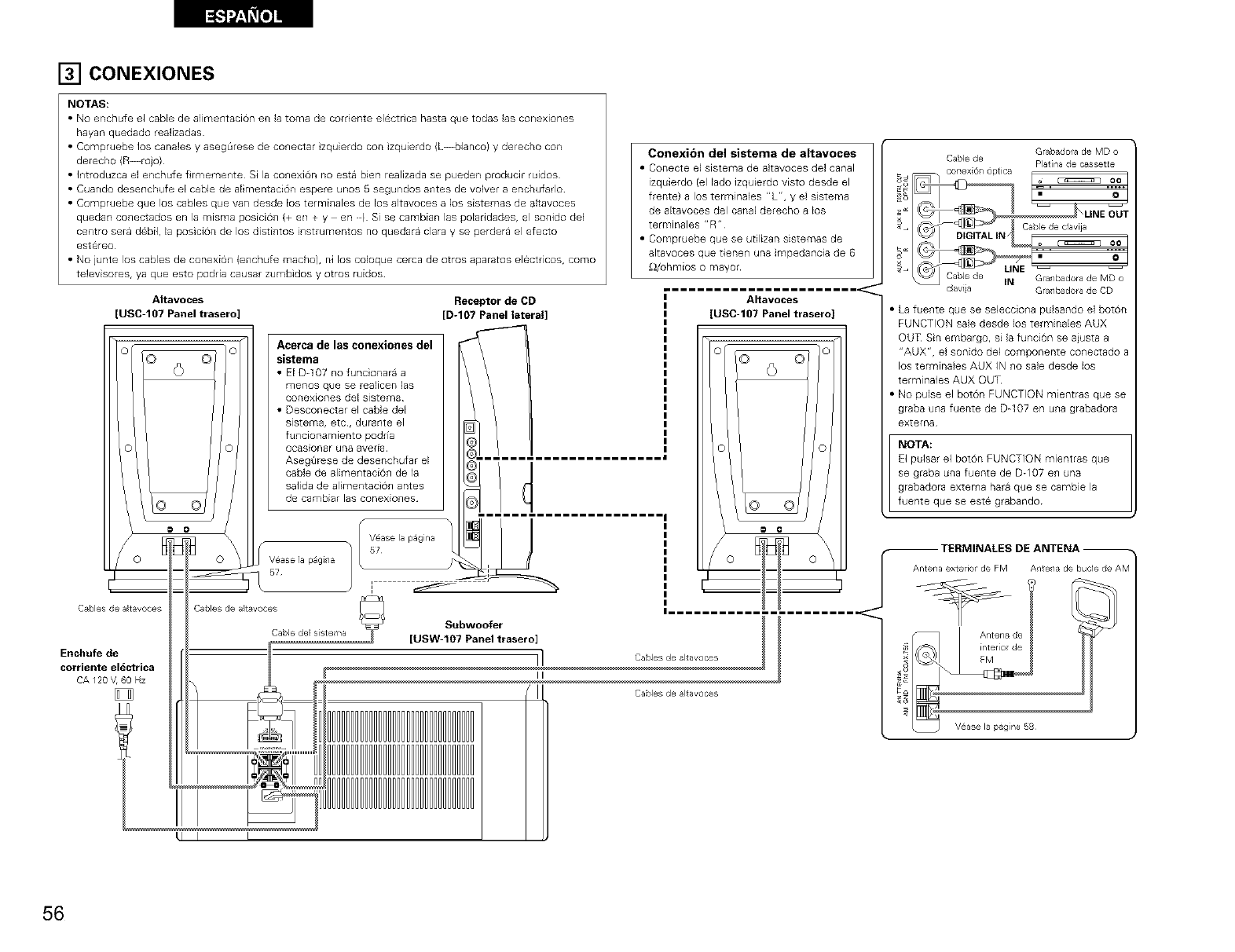 Ai replod ucir fuentes • _Los cables zquierdos y derechos de • Revlse las conexi&n [zquierda/dere 57