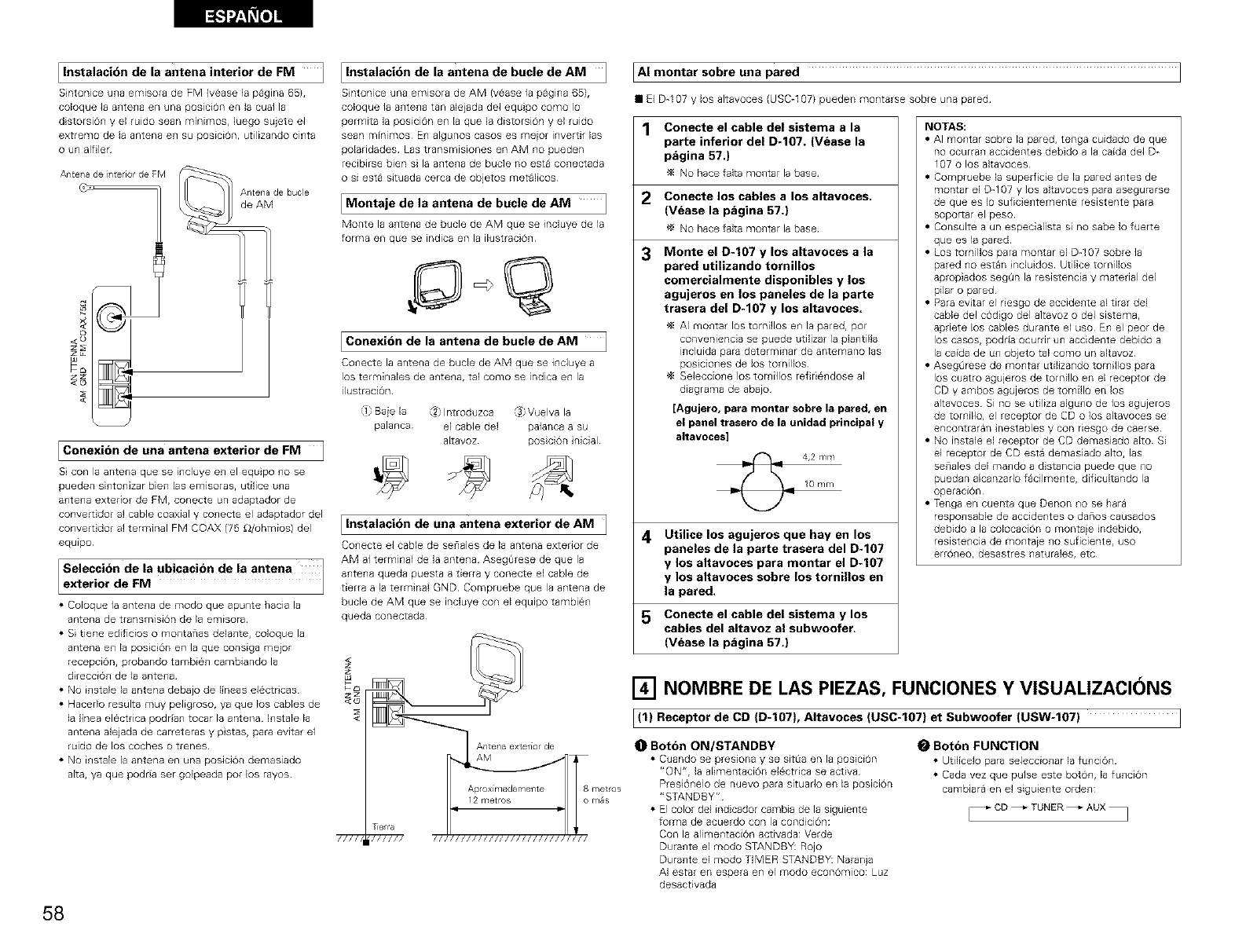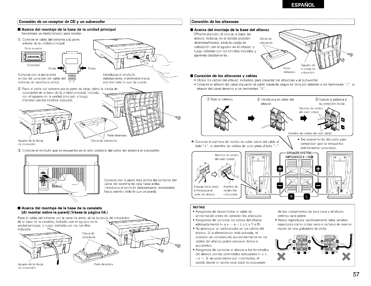 S&Io un lado produce • _Los cables de los altavoces no estan • Conecte los cab}es en forma segura 57