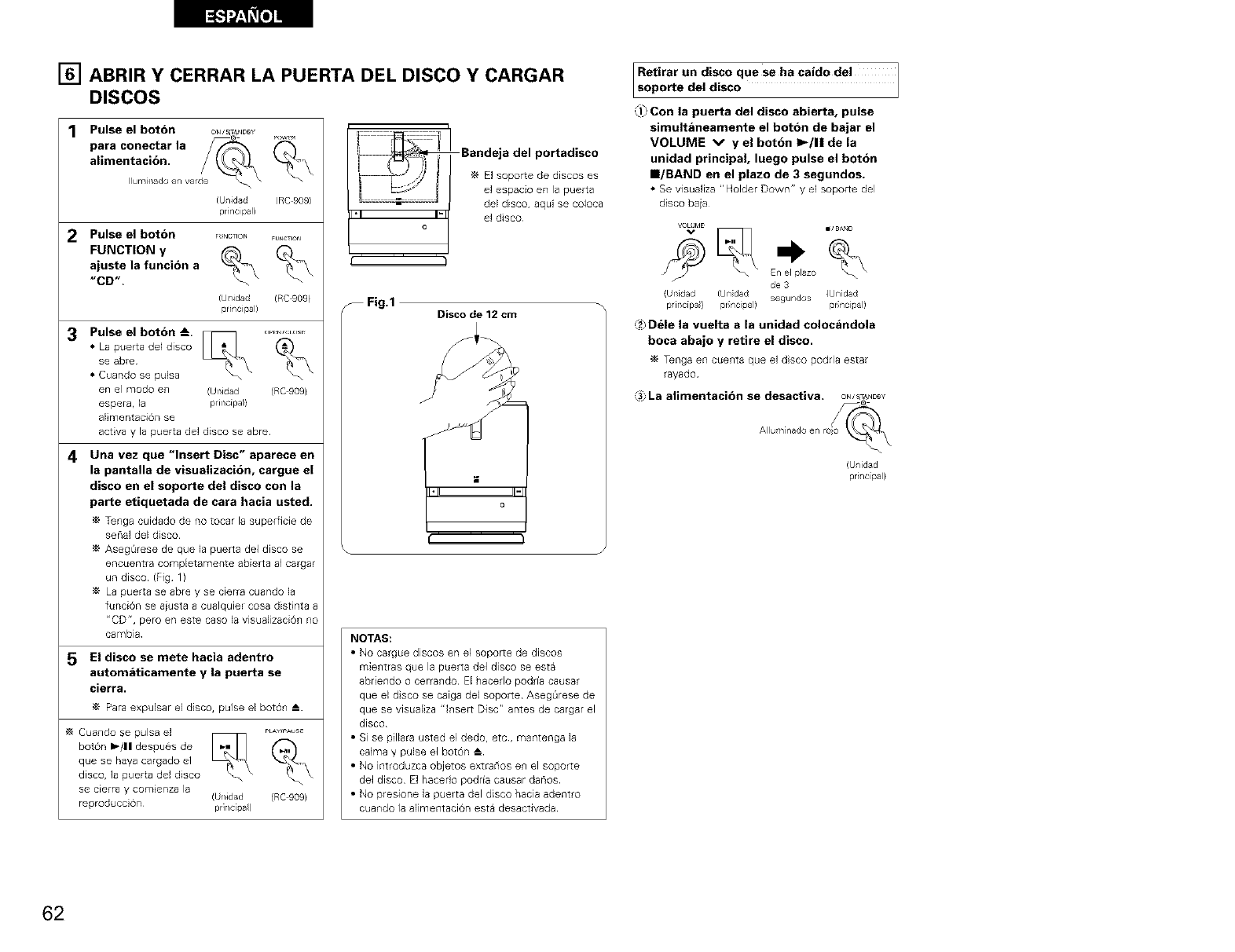 Se v sualizan ceros • _Esta el disco cargado debidamente? • Cargue el disco debidar'lente 62