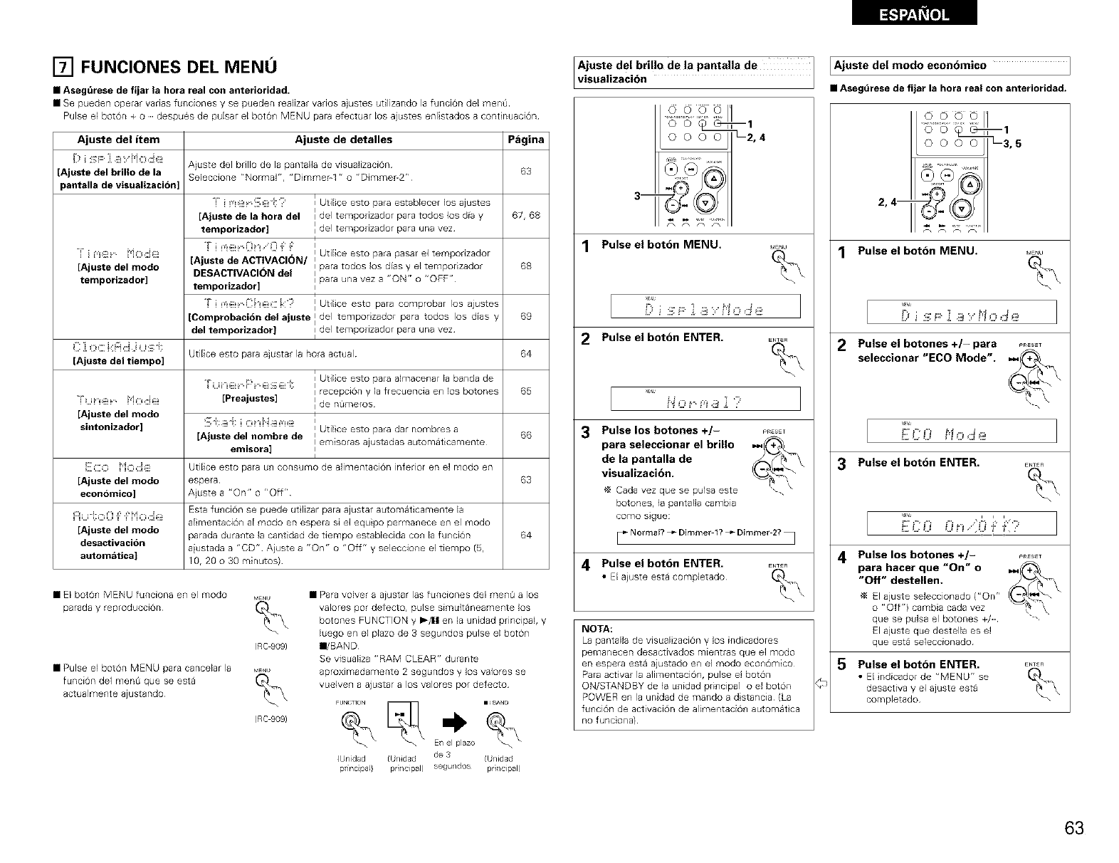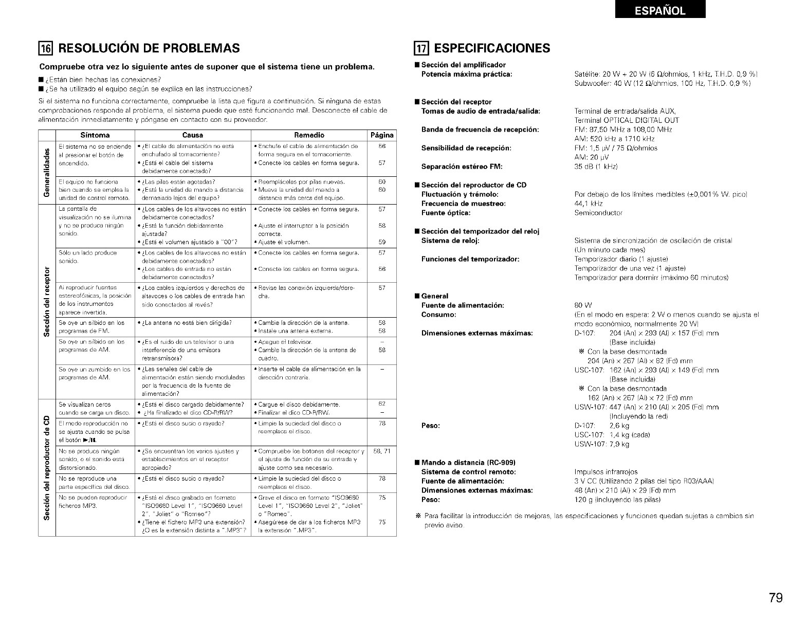 NO se produce ning_n • _Se er]cuentran los varios a ustes y • Compruebe los botches del receptol y 58 71