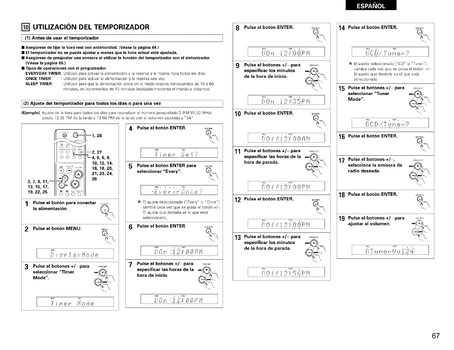 Funciones del temporizaclor: