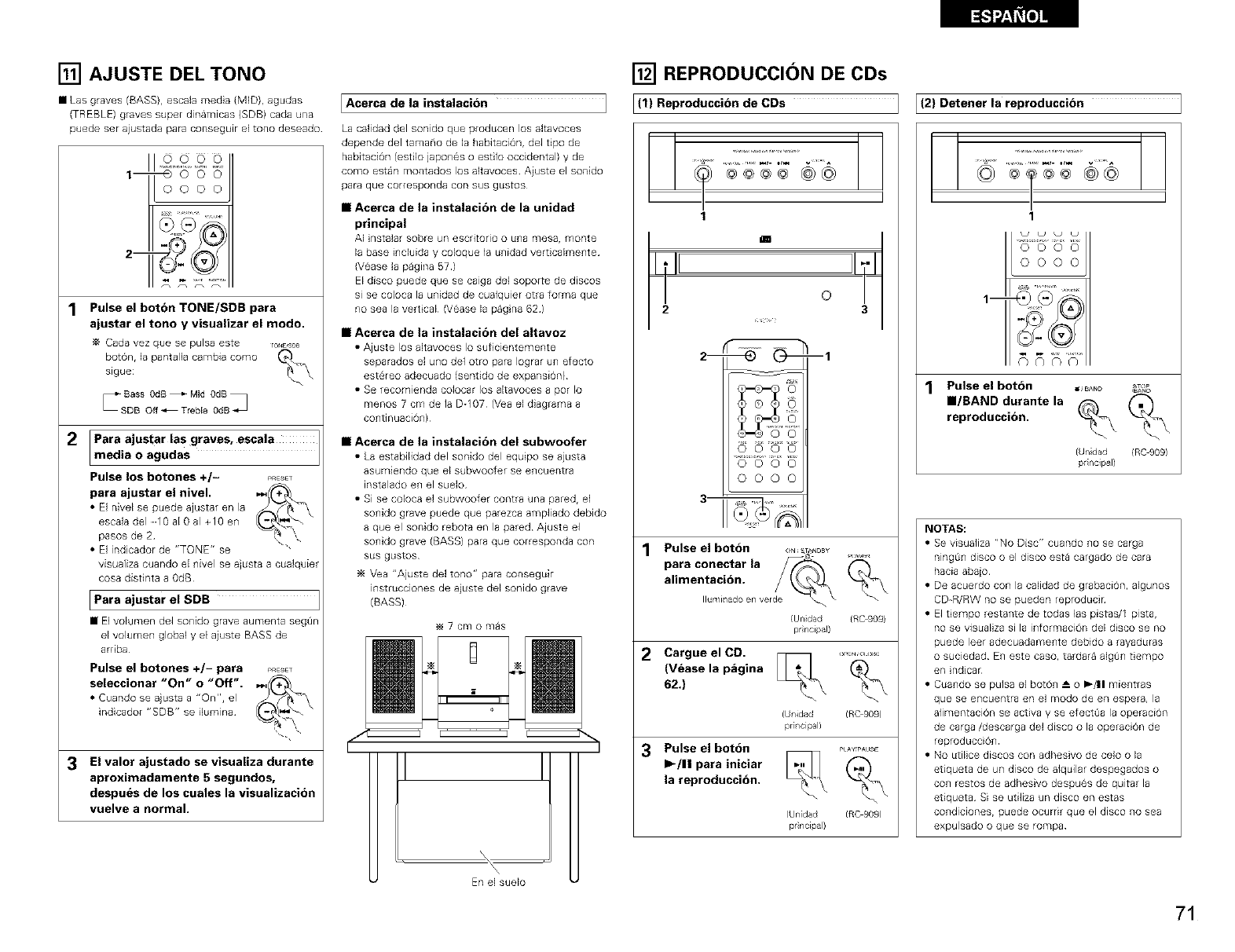 _" estereof 6nicas, la posici&n altavoces o los cables de entrada ha/ cha