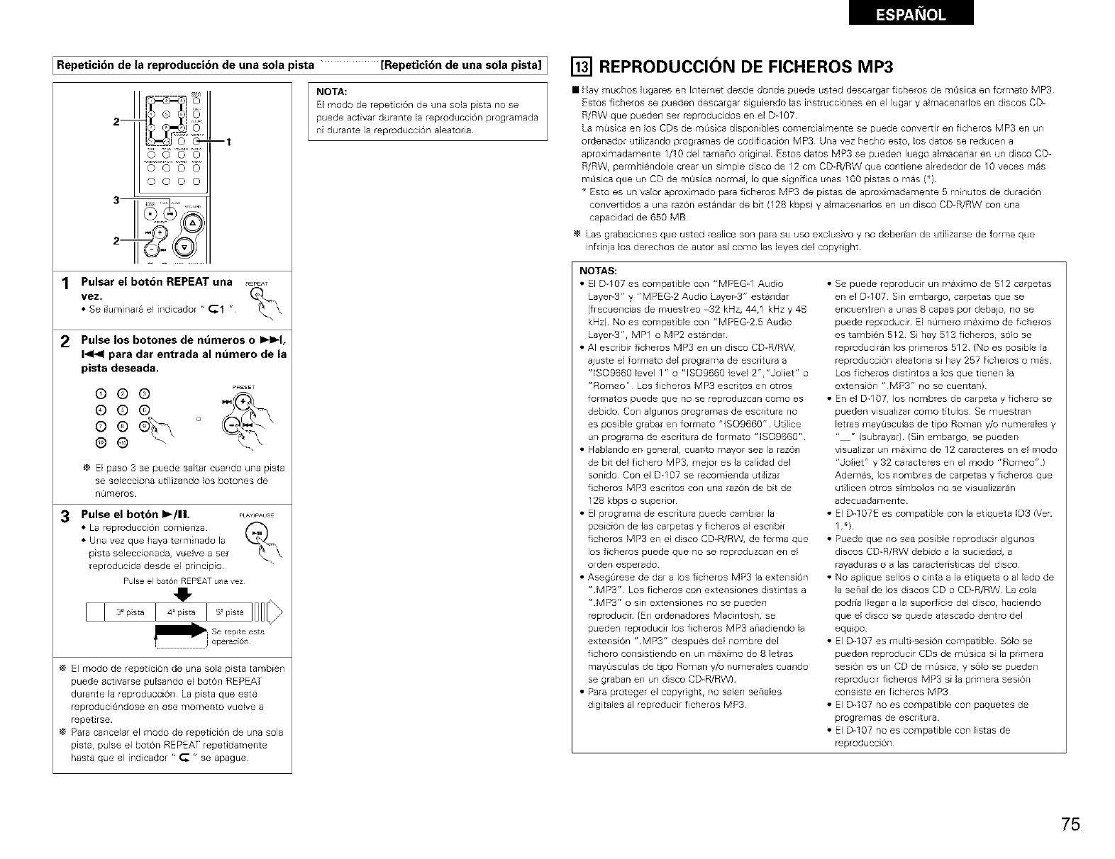 • £_ene el f c/ero MP3 una extensi6n? • AsegOrese de dar a los ficheros MP3 7S